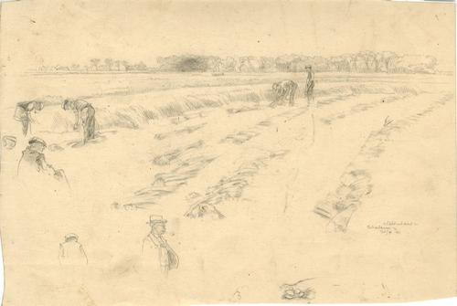 Tekening met potlood van vlastrekkers bij Schalsum d...