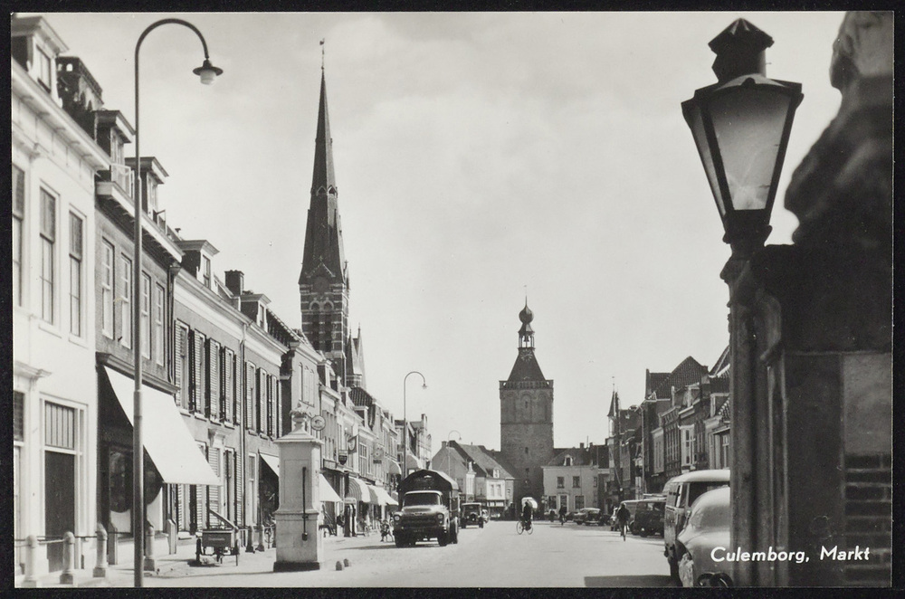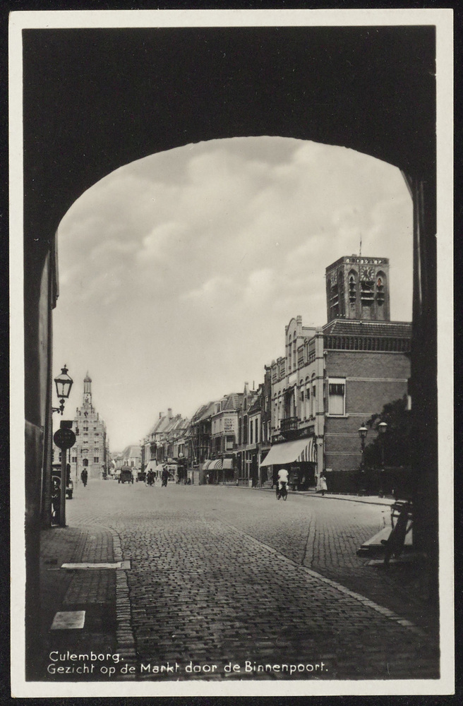 Culemborg. Gezicht op de markt door de Binnenpoort