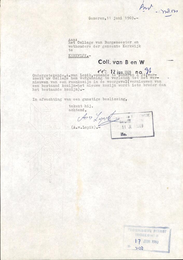 Plaatsen kozijn, 18-07-1969