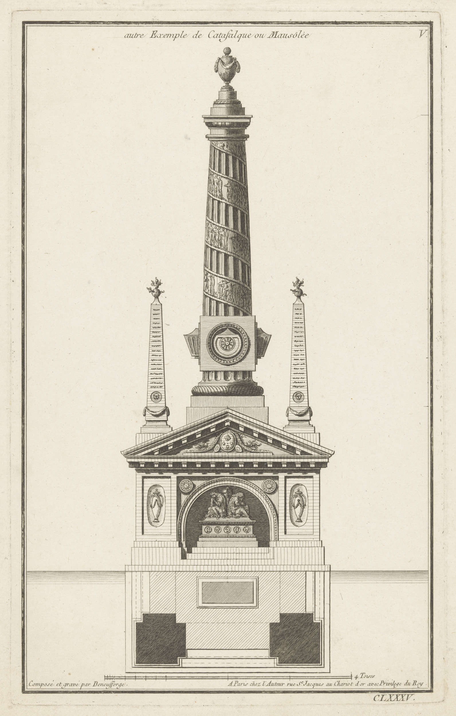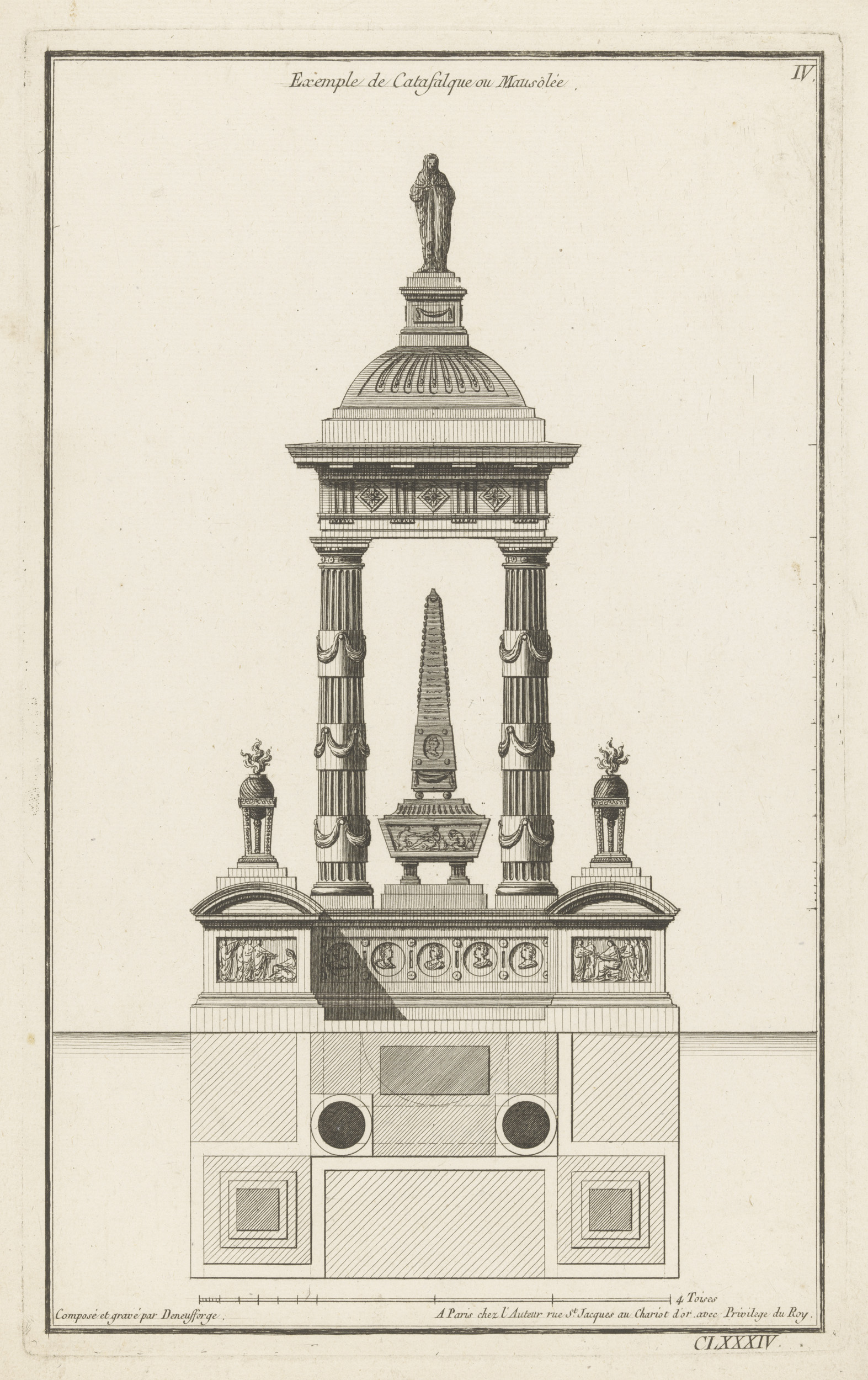 Katafalk met obelisk en rookvaten