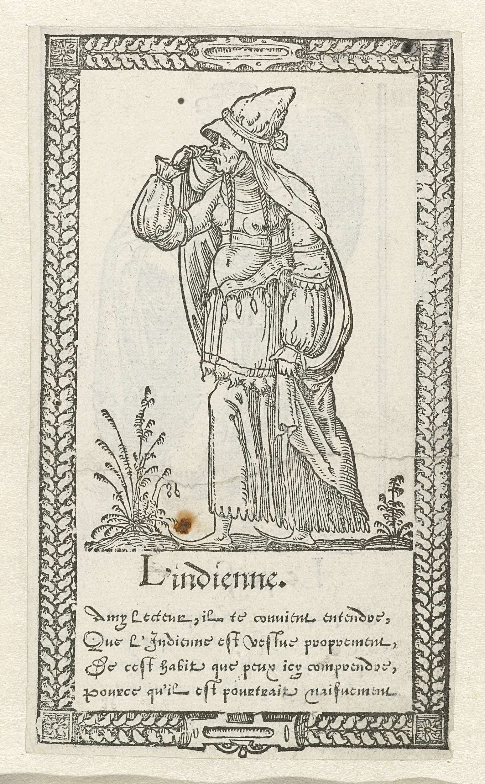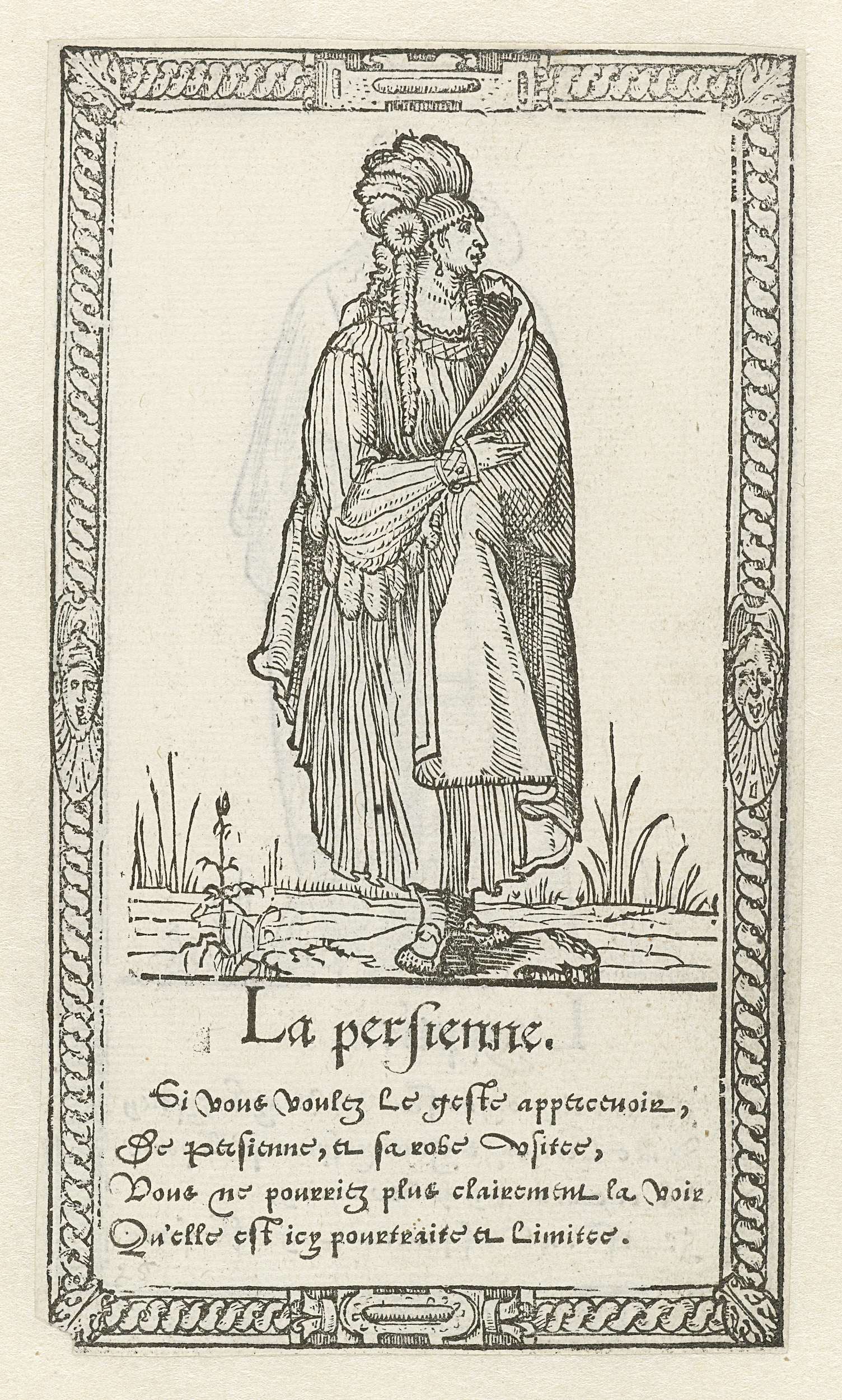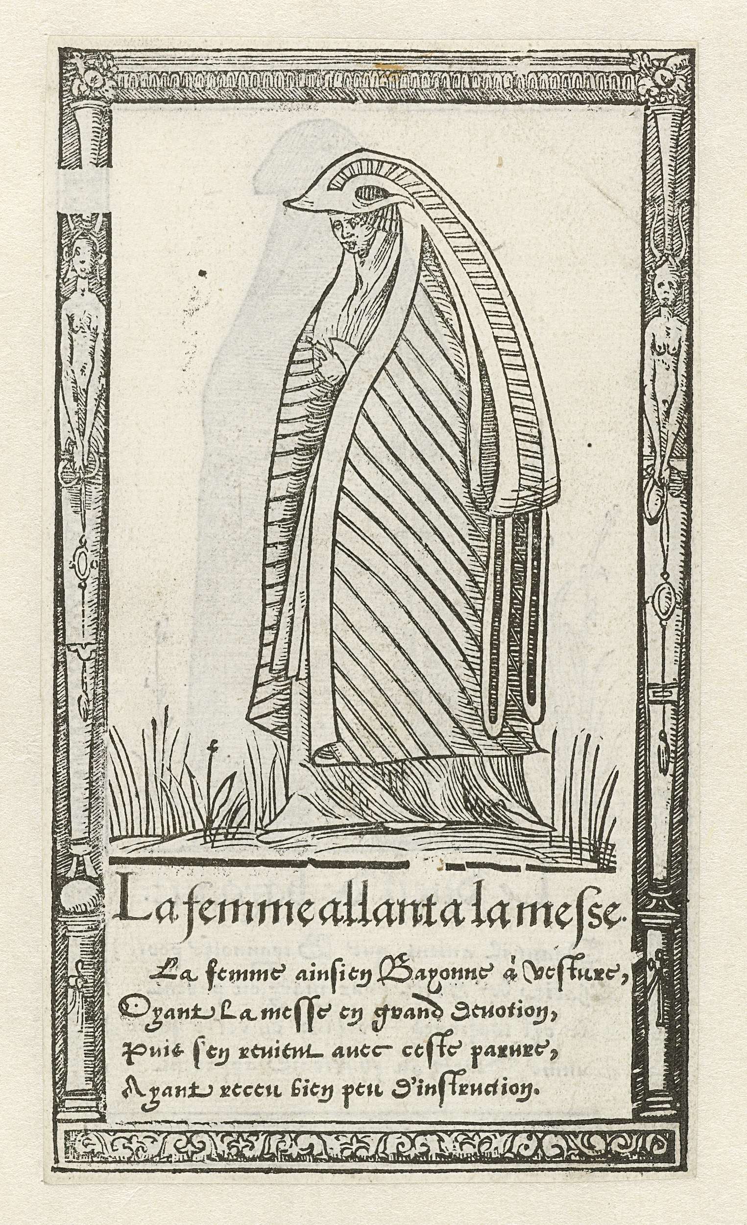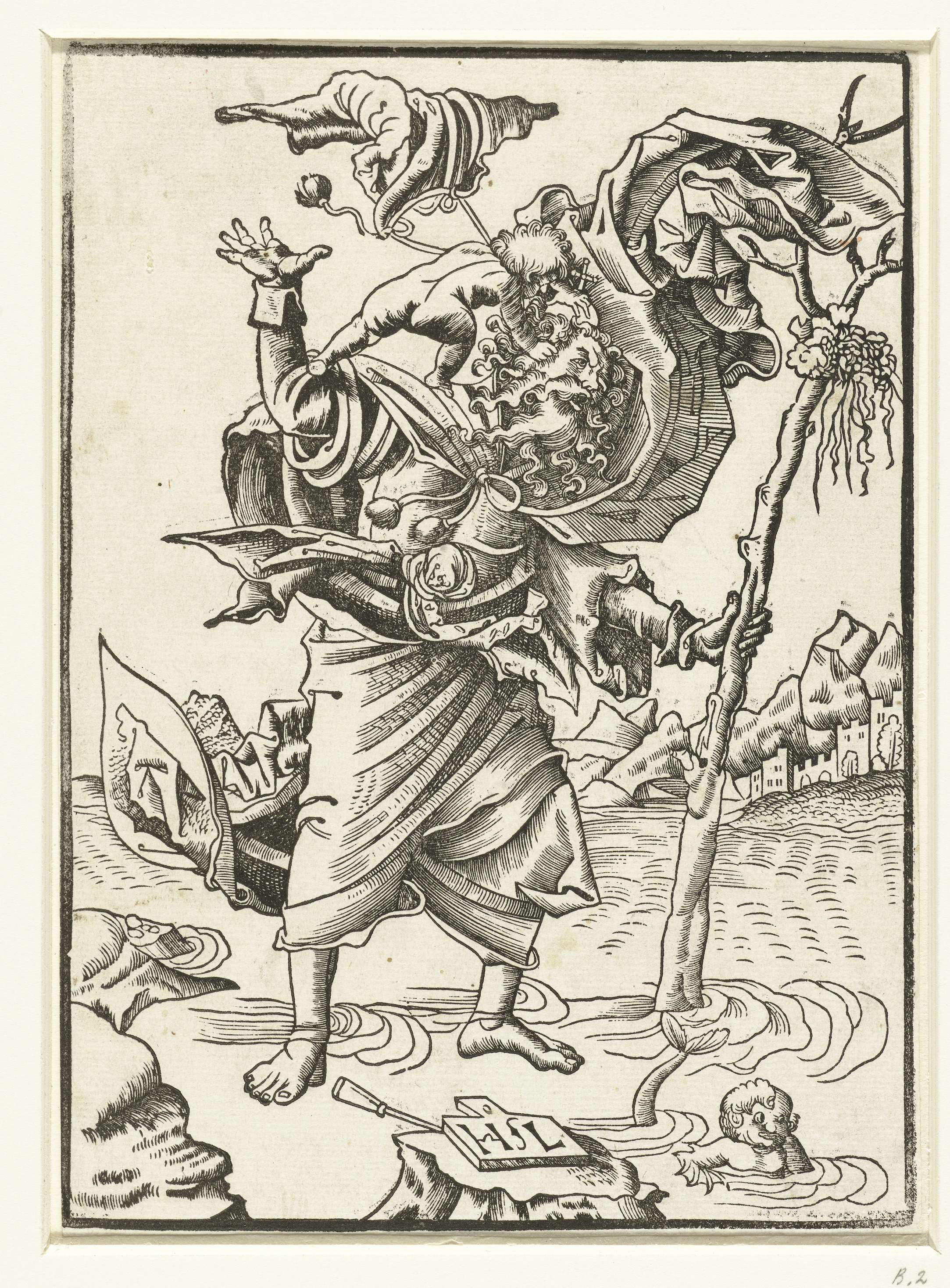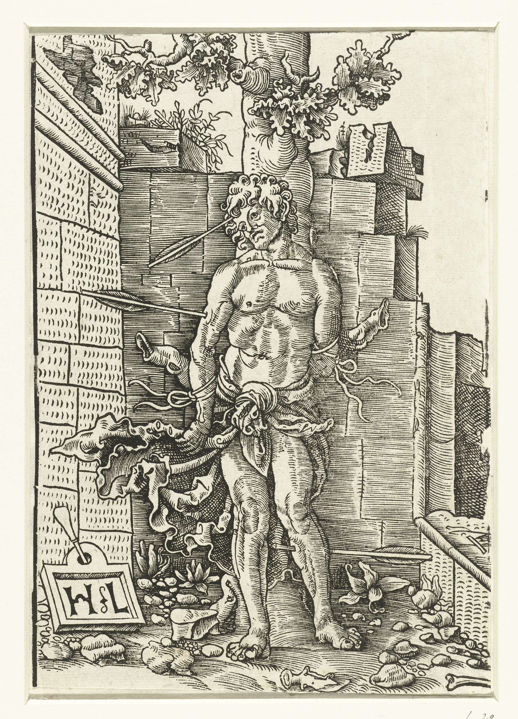 Allegorisch figuur een object dragend te midden van ...