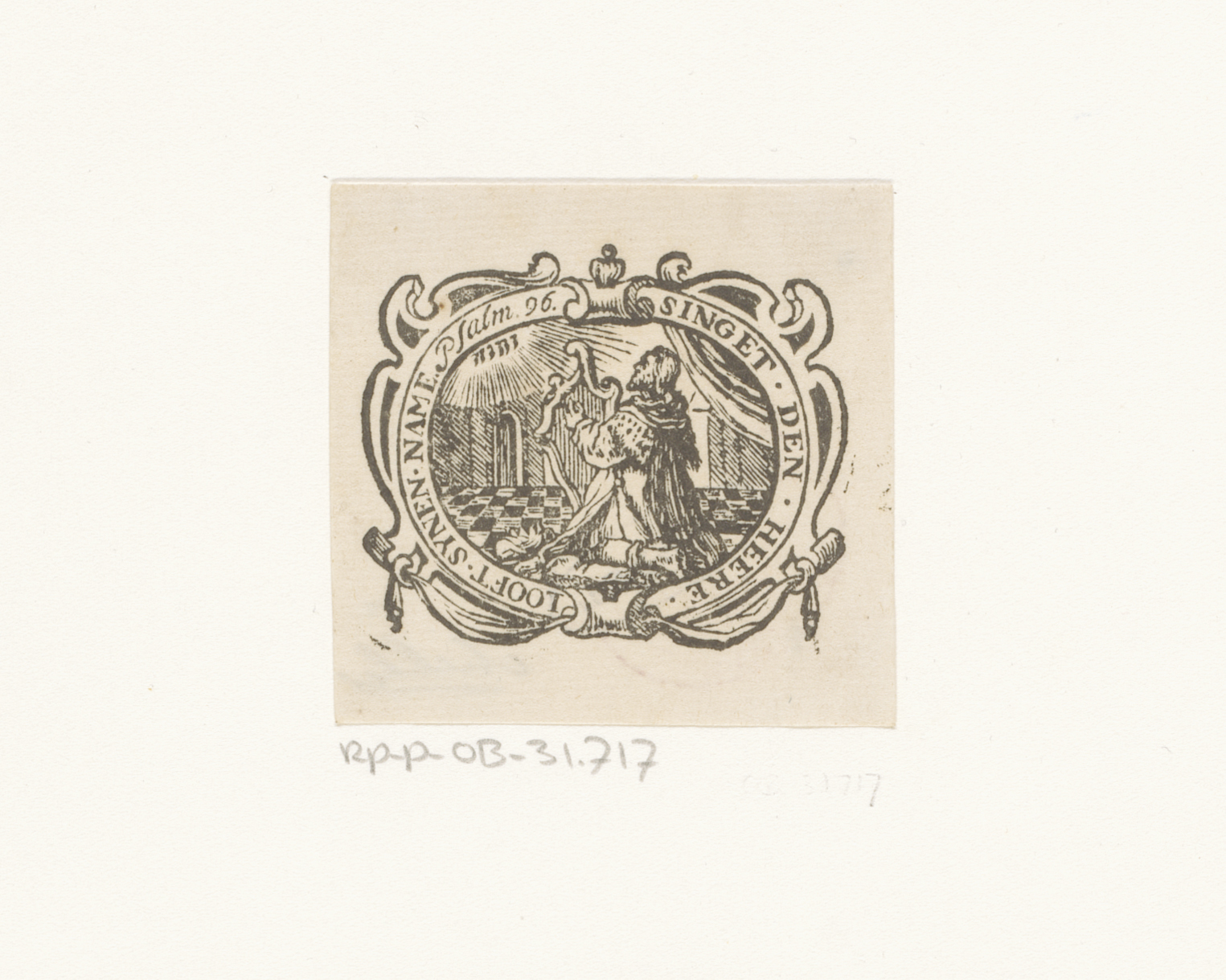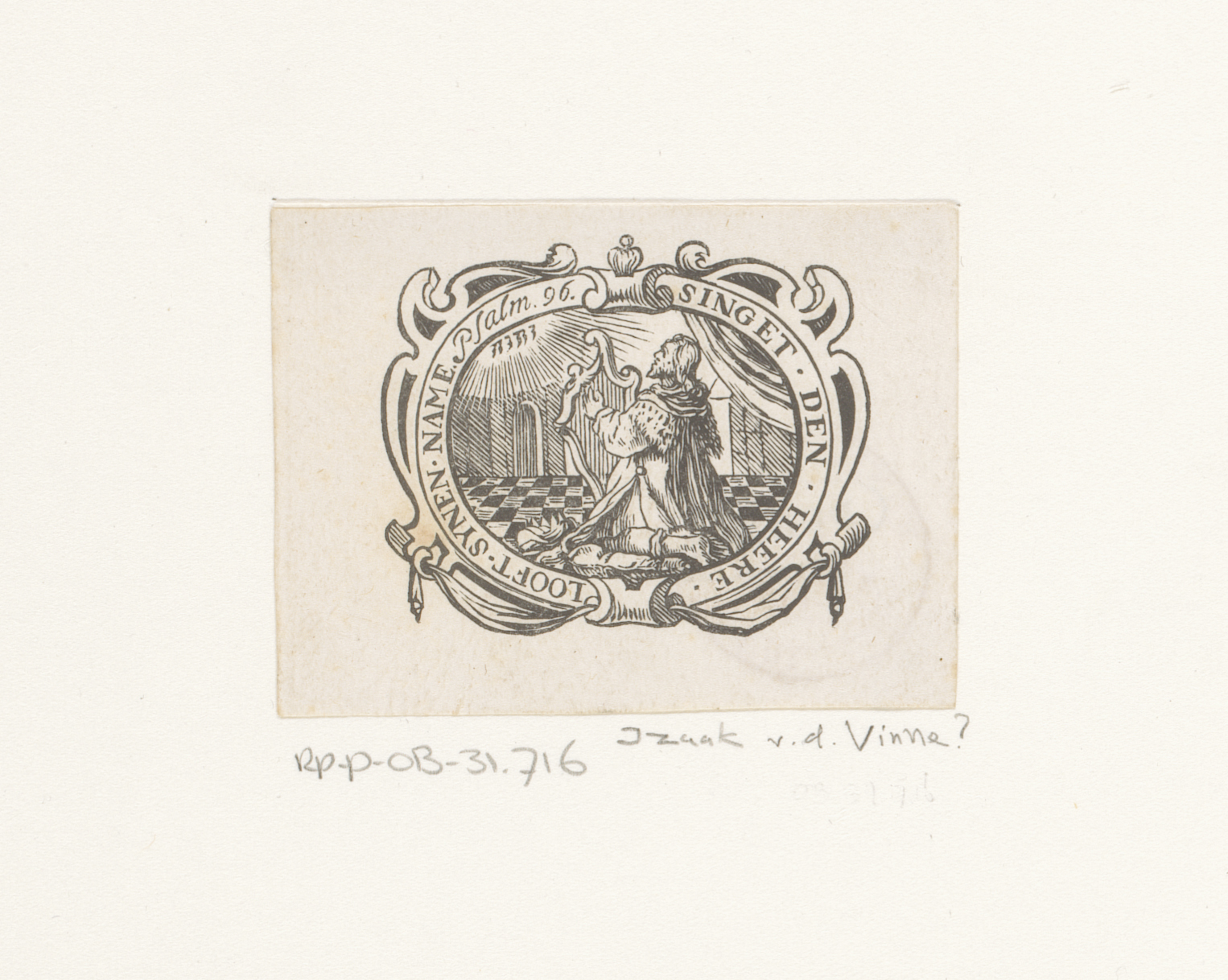 Vignet met een harpspelende David