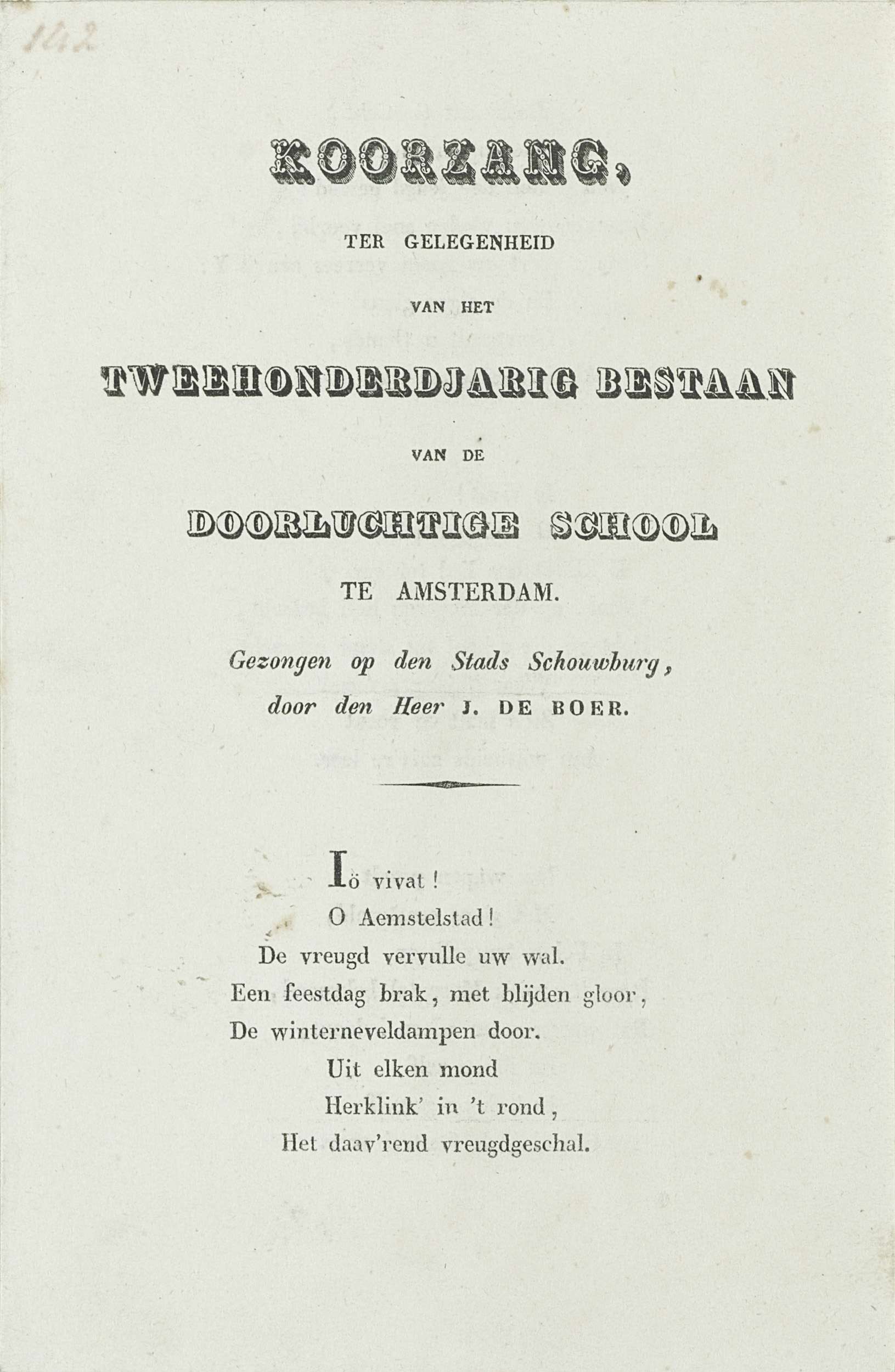Tekst van het koorzang bij de toneelvoorstelling op ...