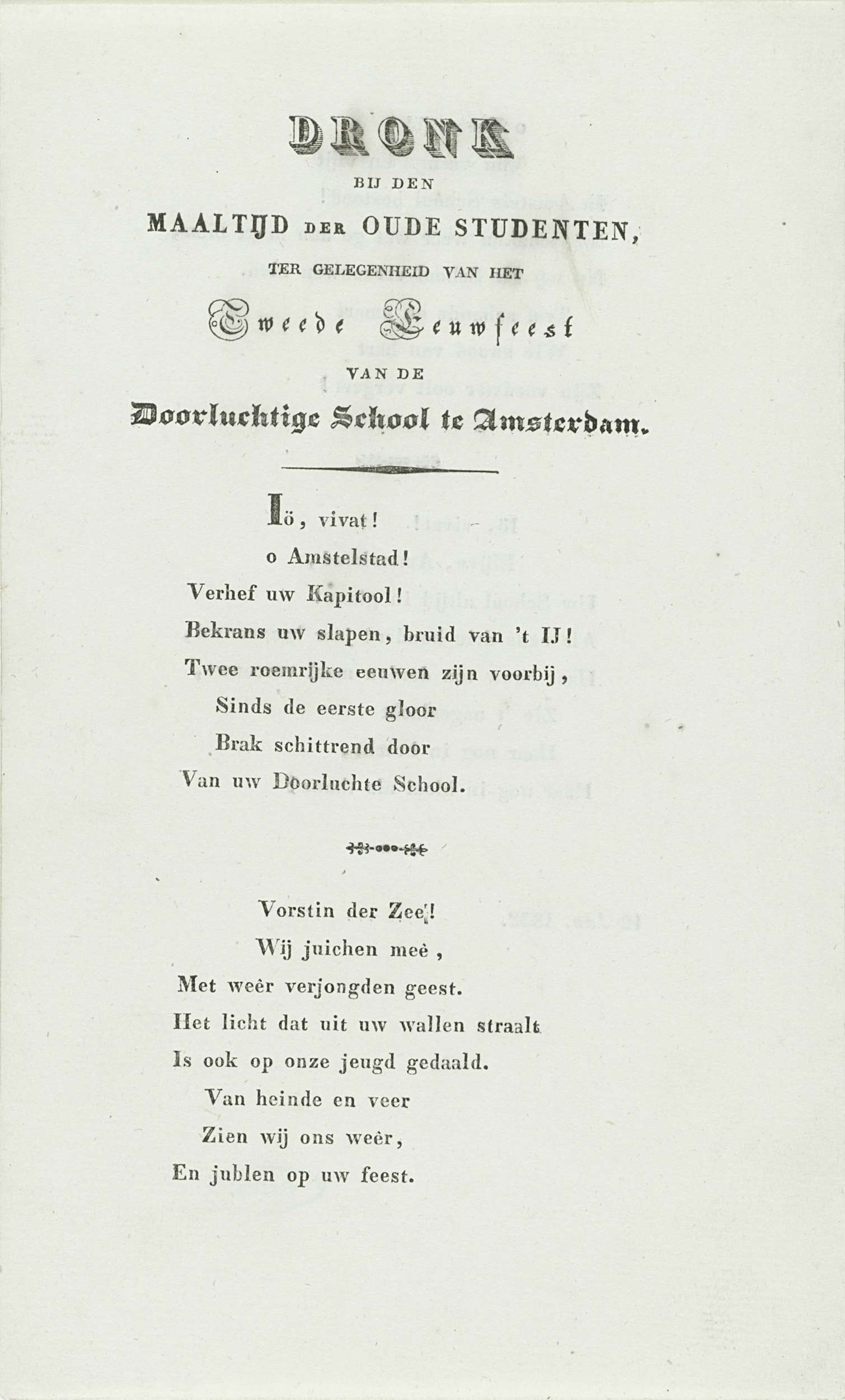 Lied gezongen bij de maaltijd van oud-studenten van ...