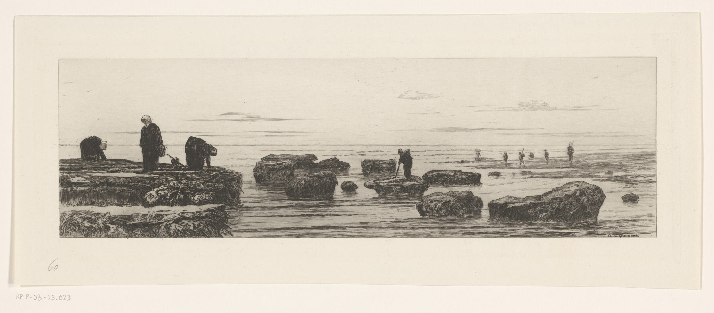 Zeewierplukkers aan de kust bij Veules