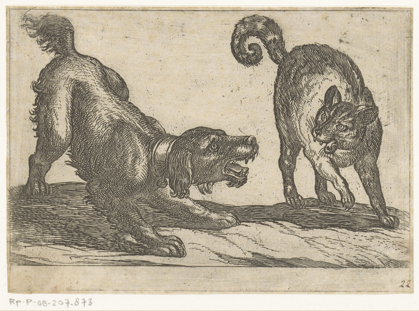 Een hond vechtend met een kat
