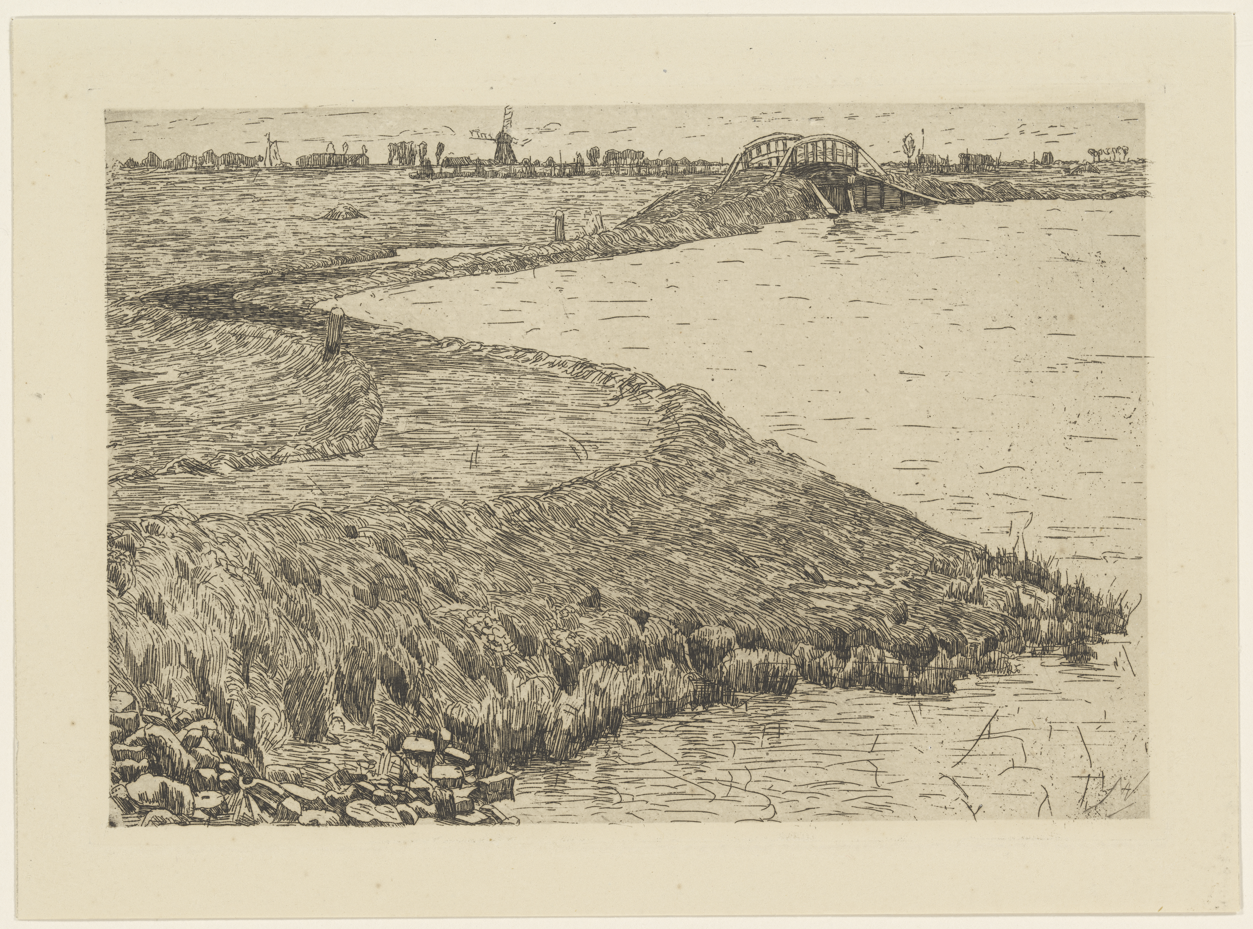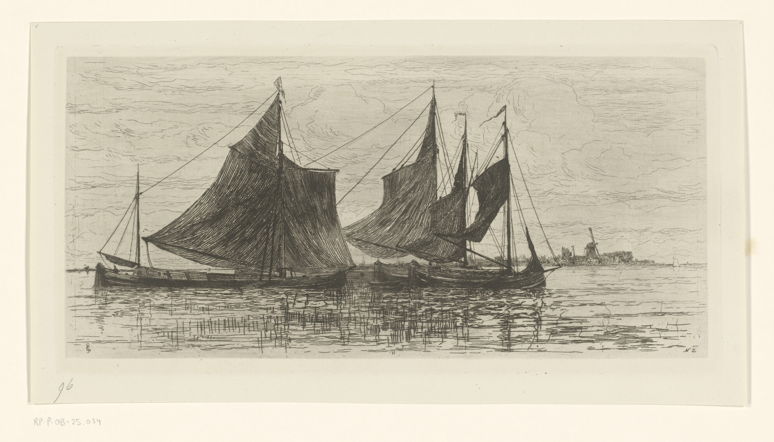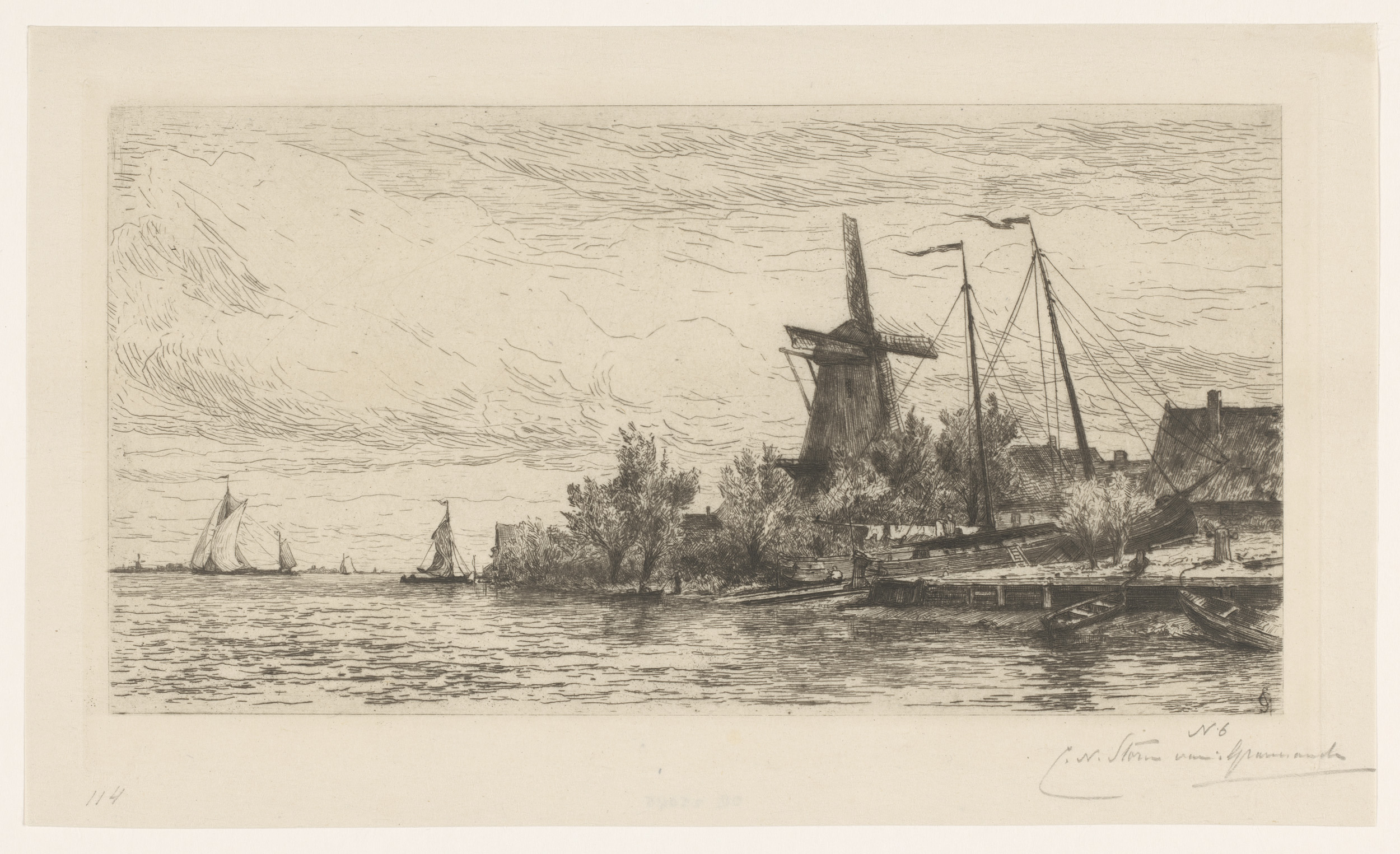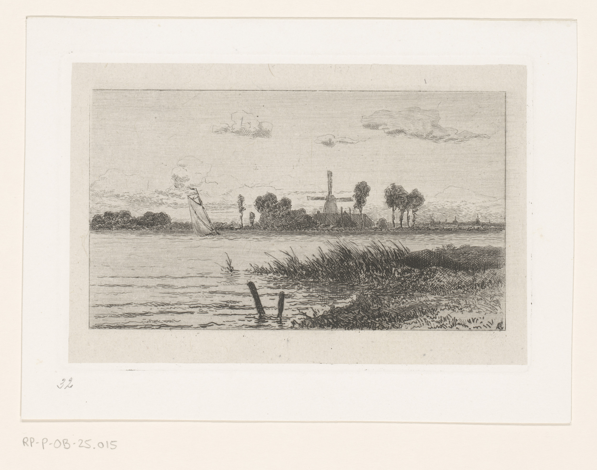 Landschap met molen en zeilschepen bij Dordrecht