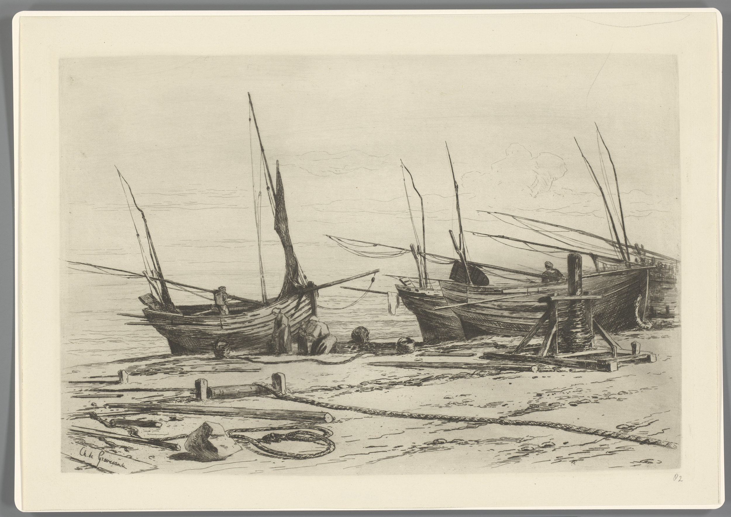 Boten op het strand van Étretat