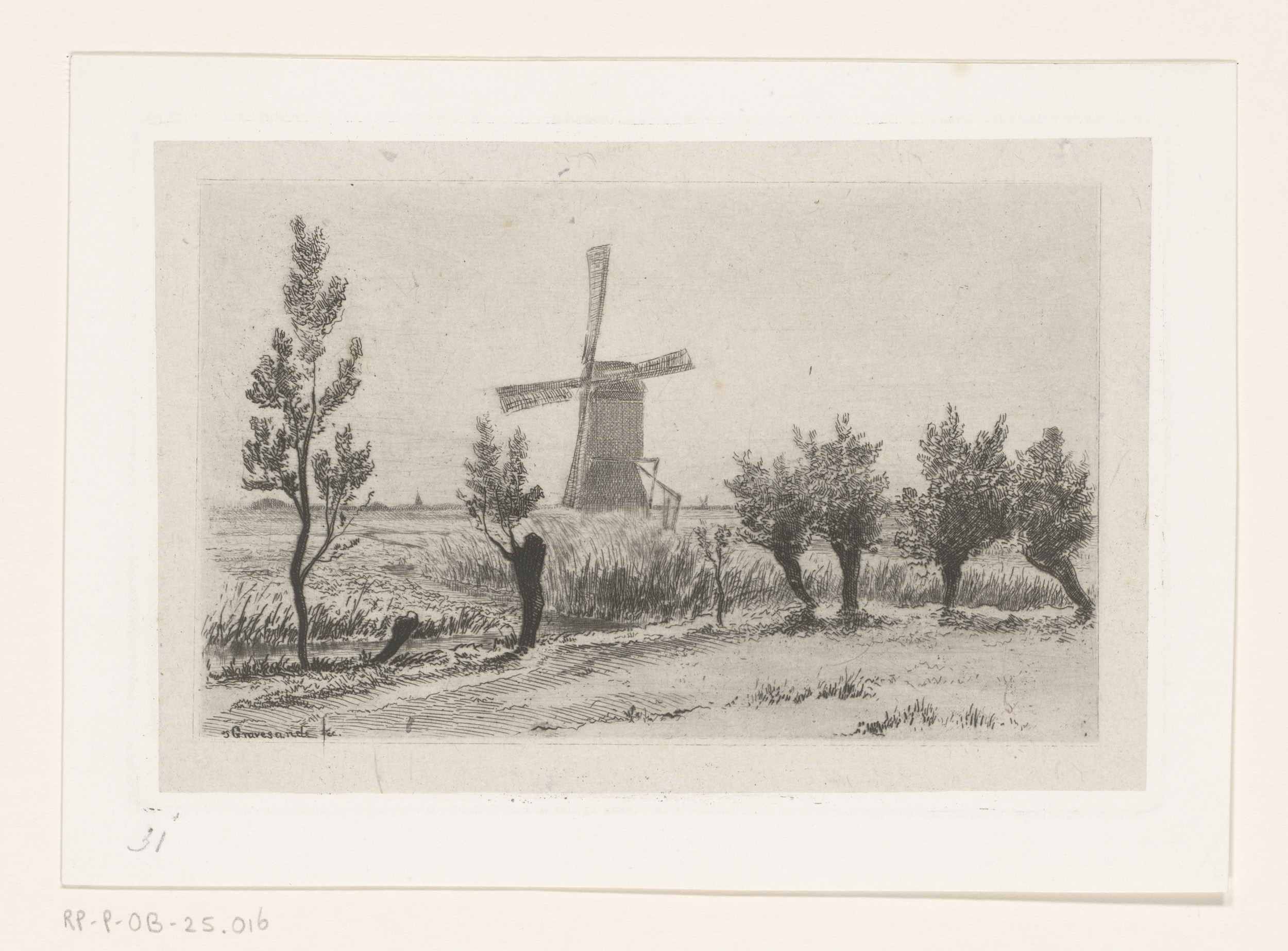 Landschap met molen en knotwilgen bij Abcoude