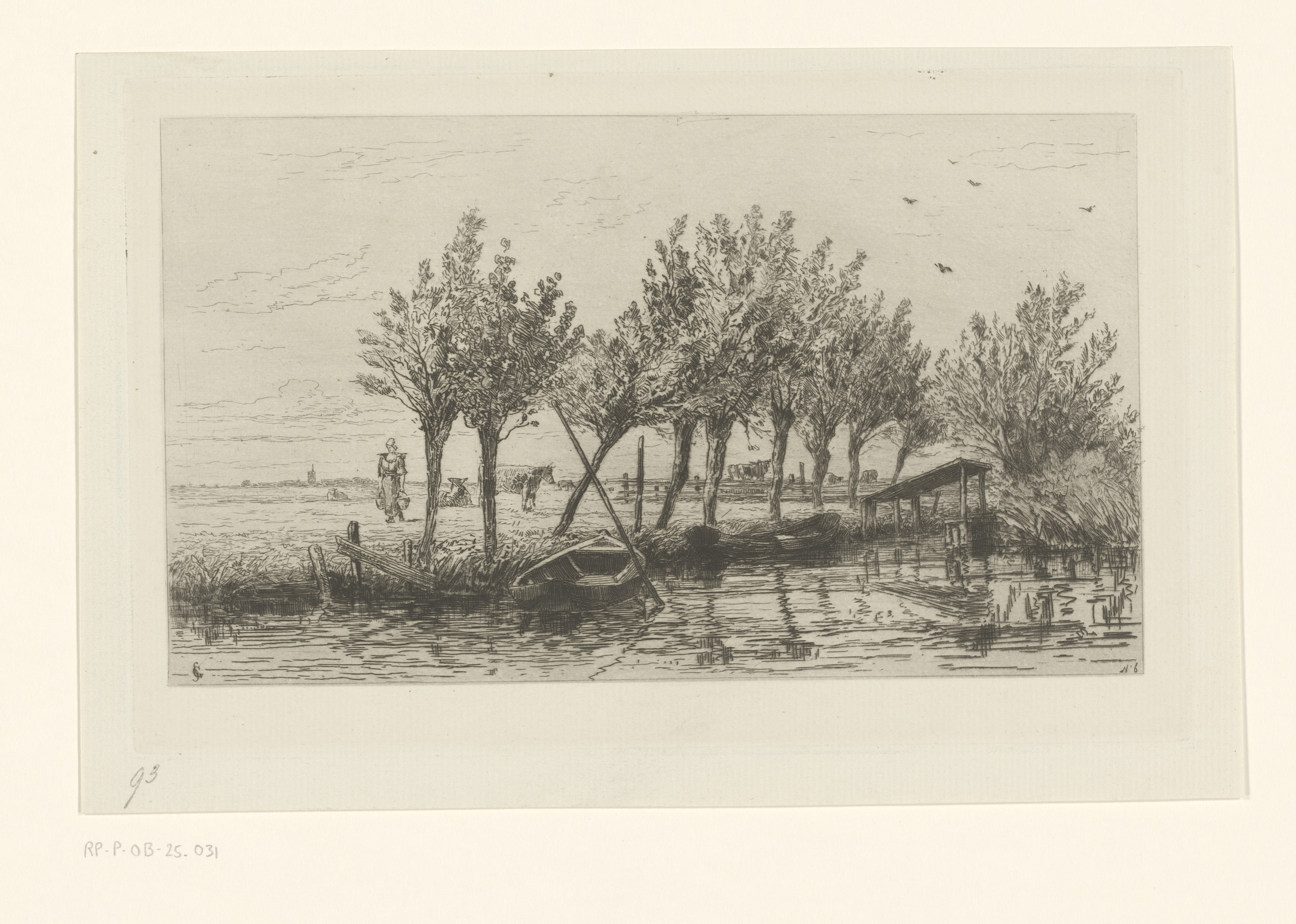 Polderlandschap met weilanden, sloot en roeiboot