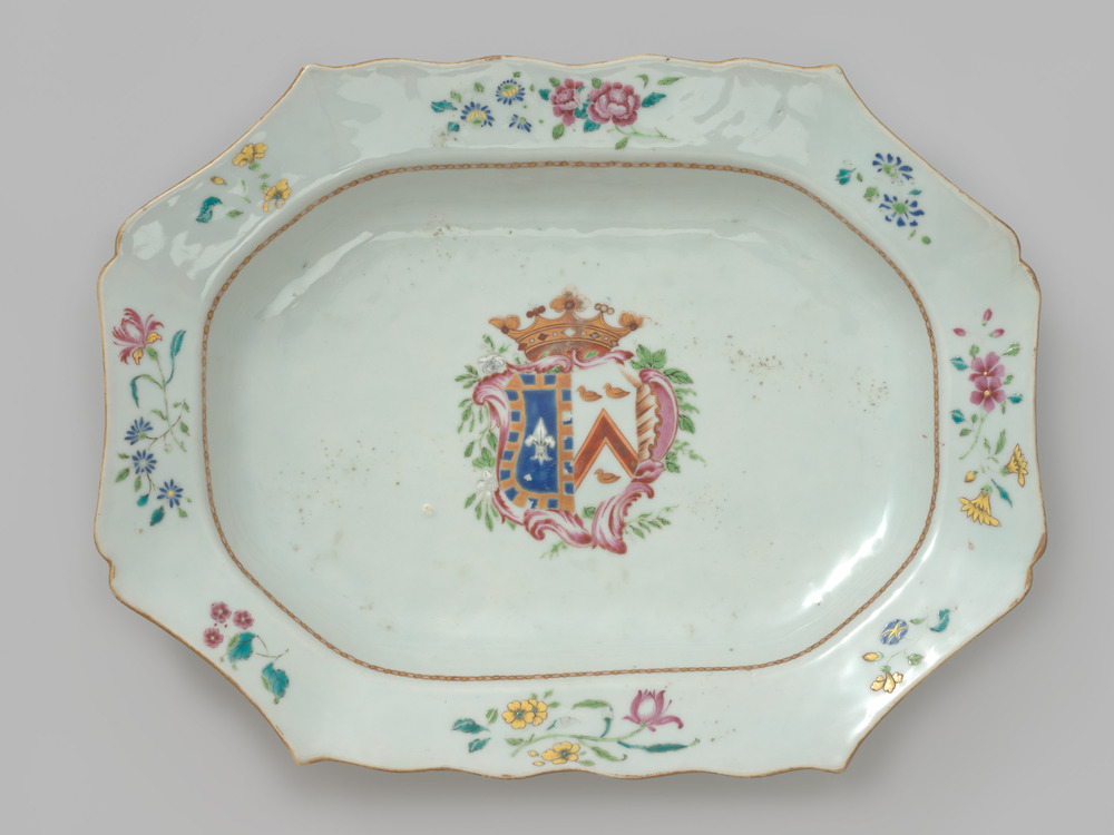 Porseleinen schaal met het familiewapen Crommelin