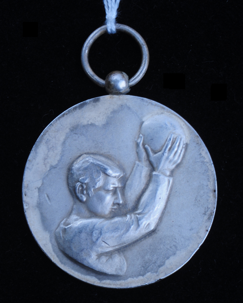 Medaille van metaal voorstellende een korfballer 1920