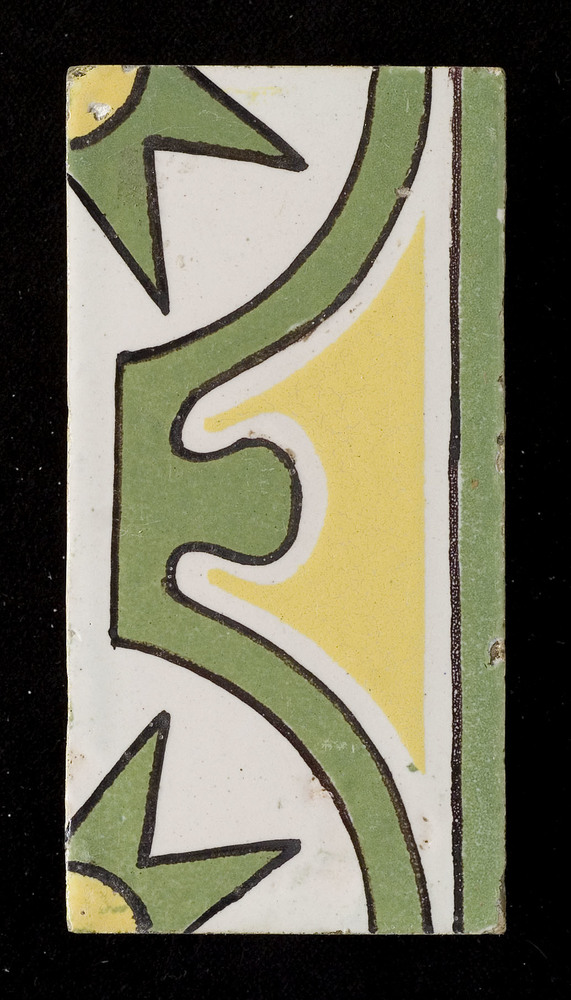 effen tegel van aardewerk met tinglazuur, groen-geel...