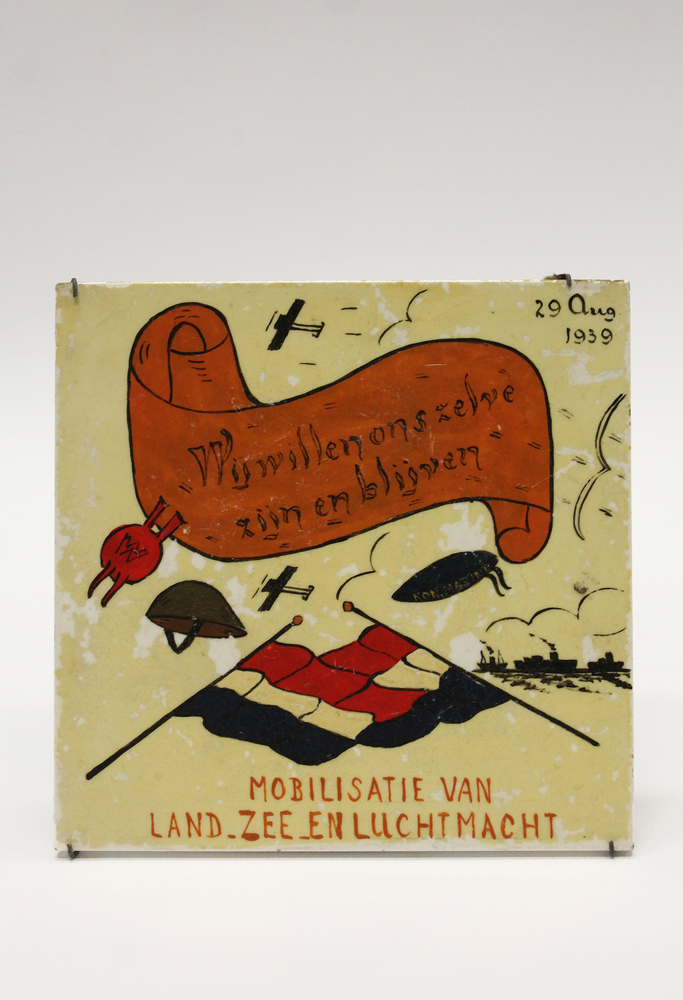 Wandbordje van keramiek ter herdenking aan de mobili...
