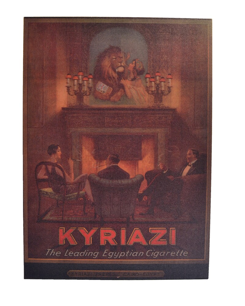 Reclame op paneel van hout van het Egyptische merk K...