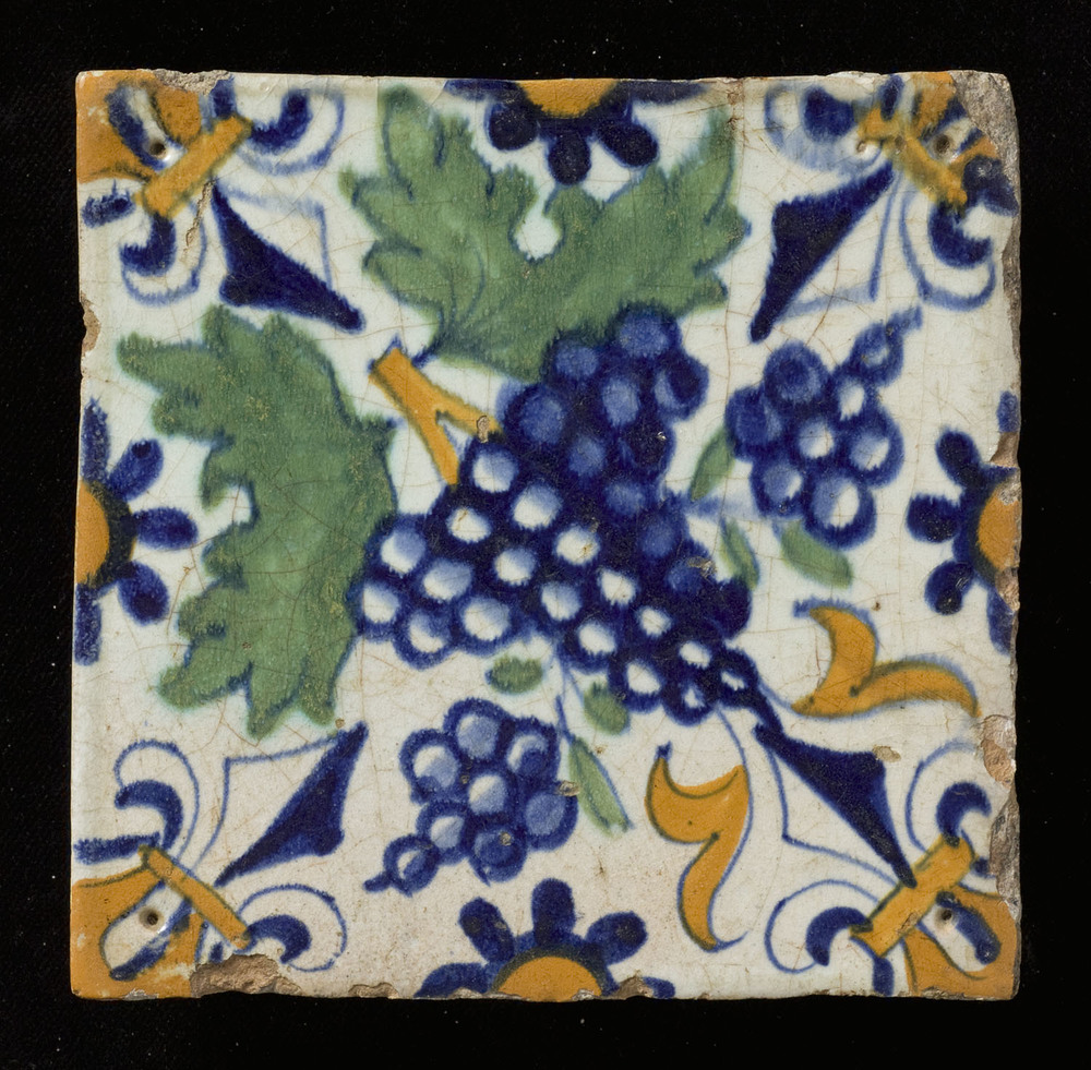 tegel van keramiek met tinglazuur, voorstellende: go...