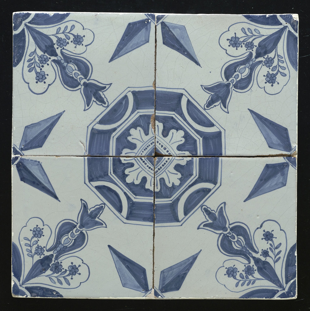 tegel van aardewerk met tinglazuur, voorstellende: o...
