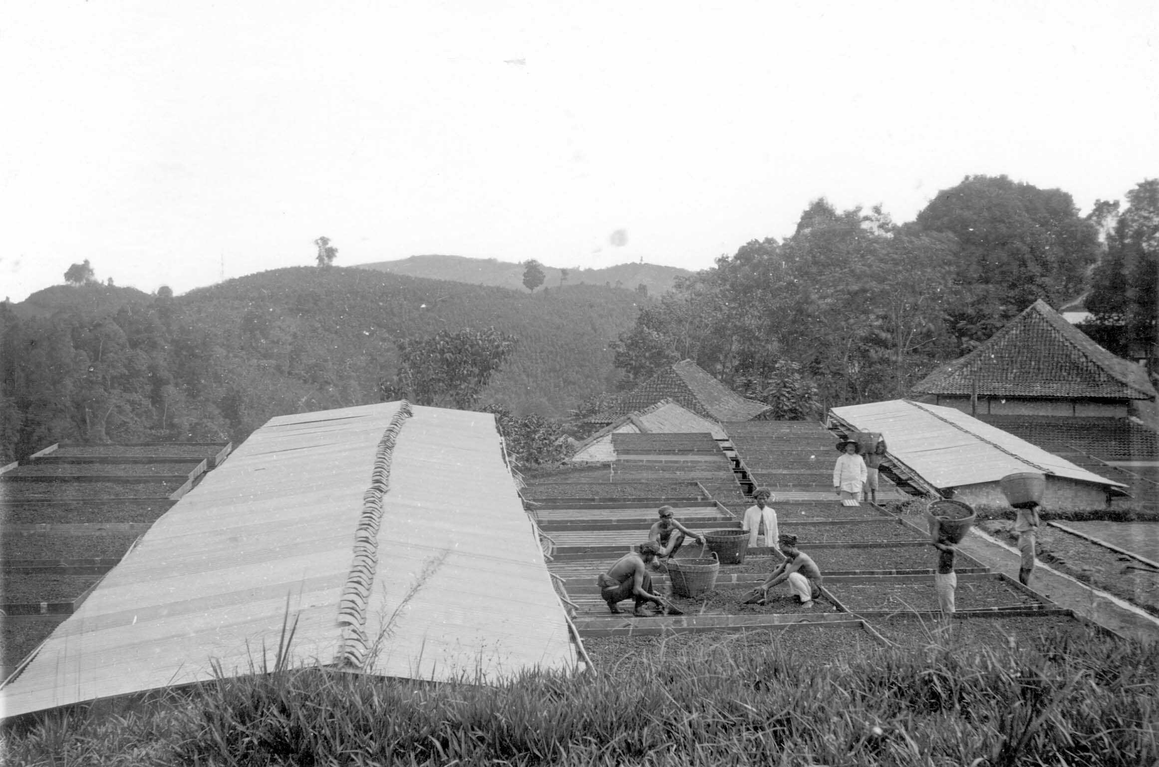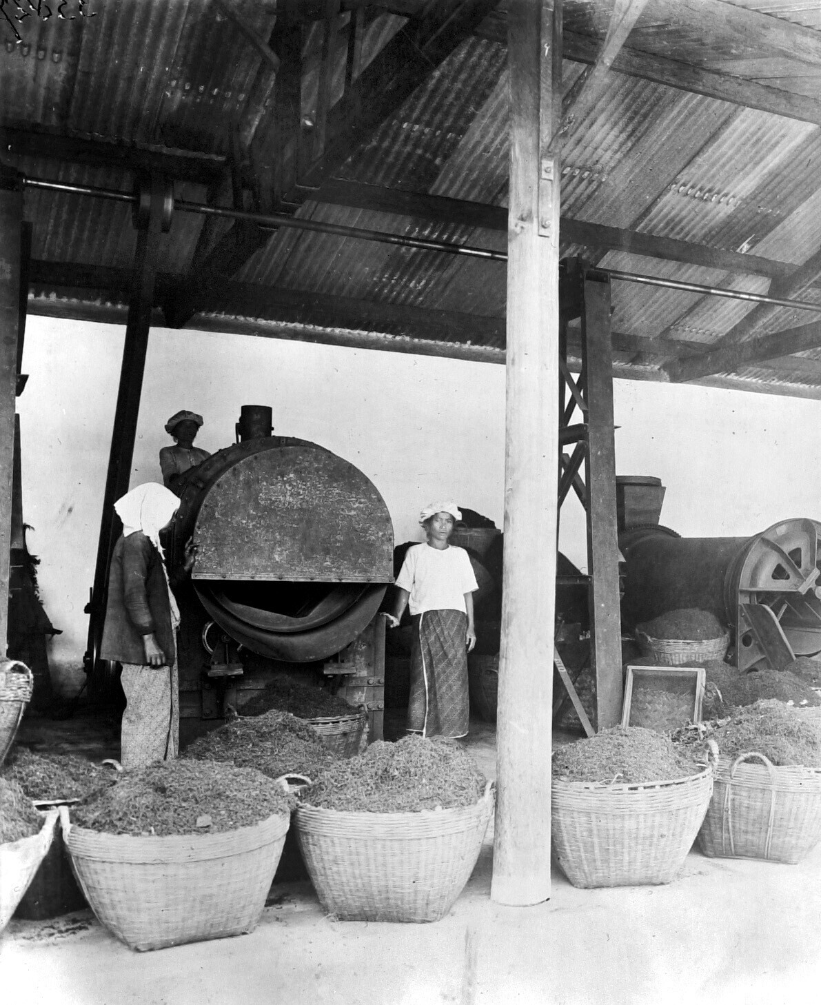Het drogen van de thee op de onderneming Goenoeng Ro...