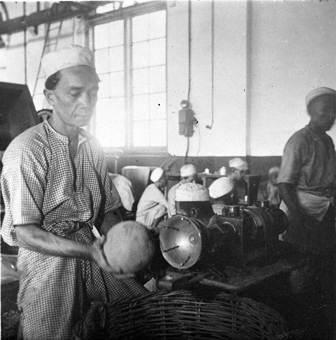Zeef en rafelmachine in de sigarenfabriek te Magelan...