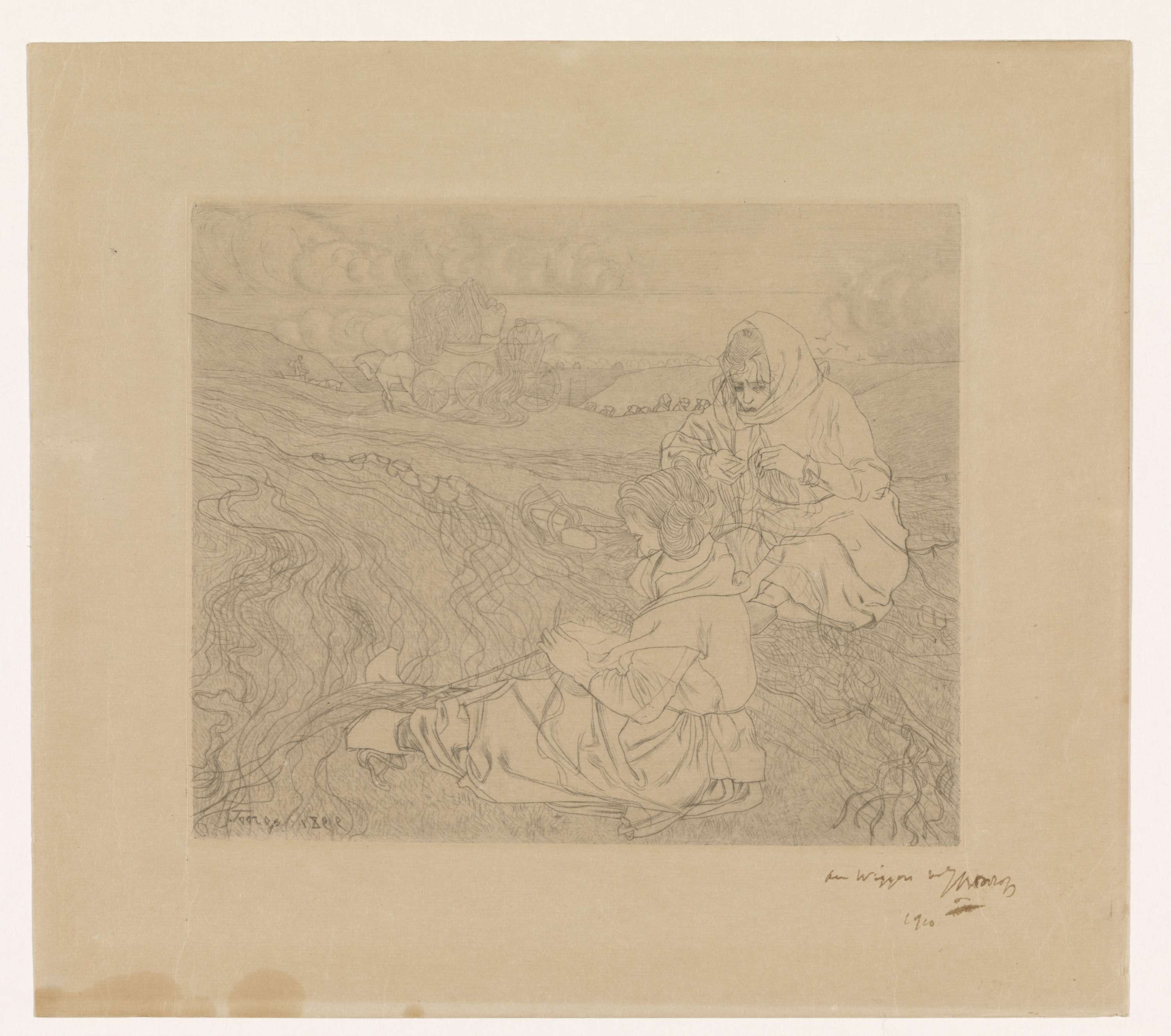 Twee vrouwen die netten boeten, te Katwijk aan Zee