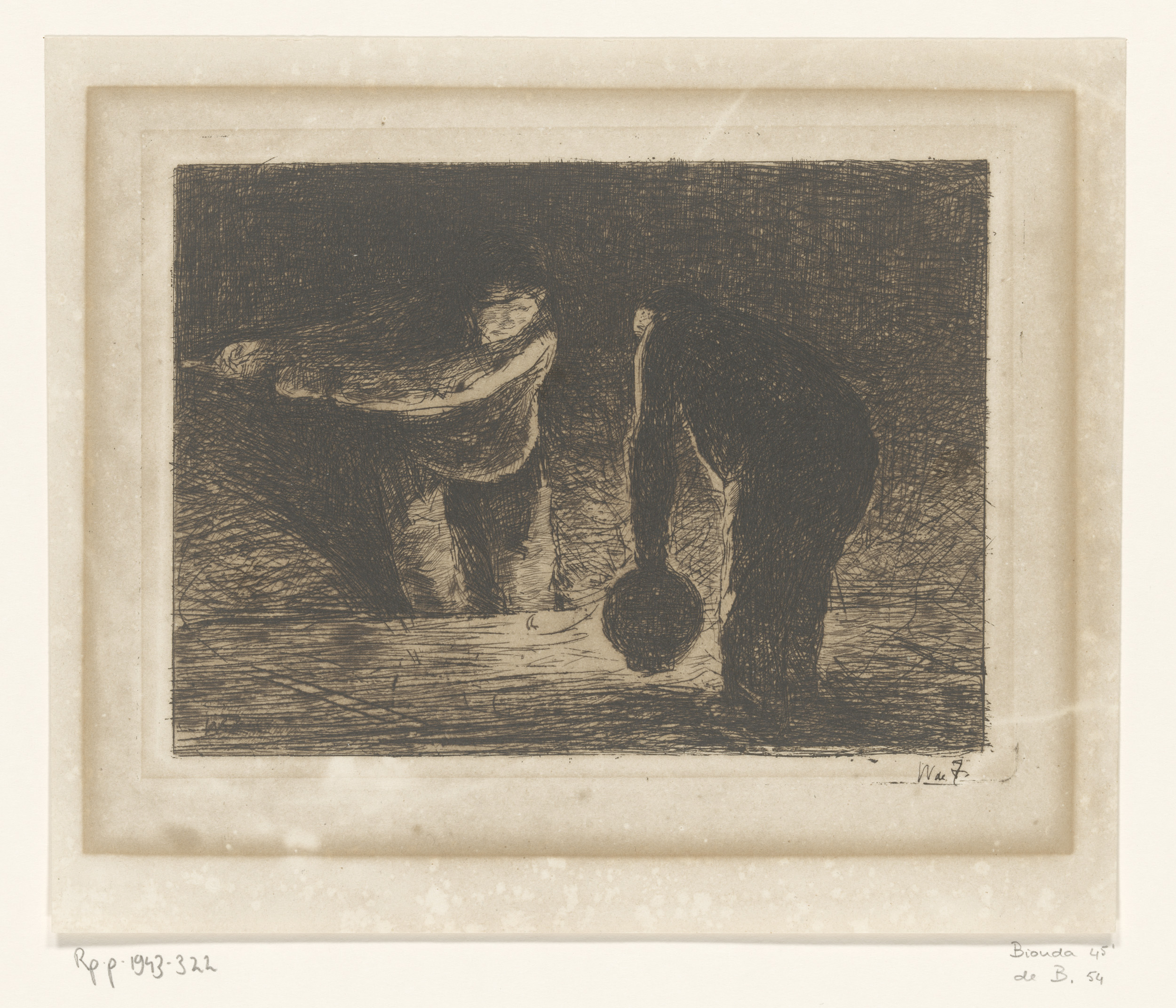 Twee mannen aan het werk (met scheepslantaarn)