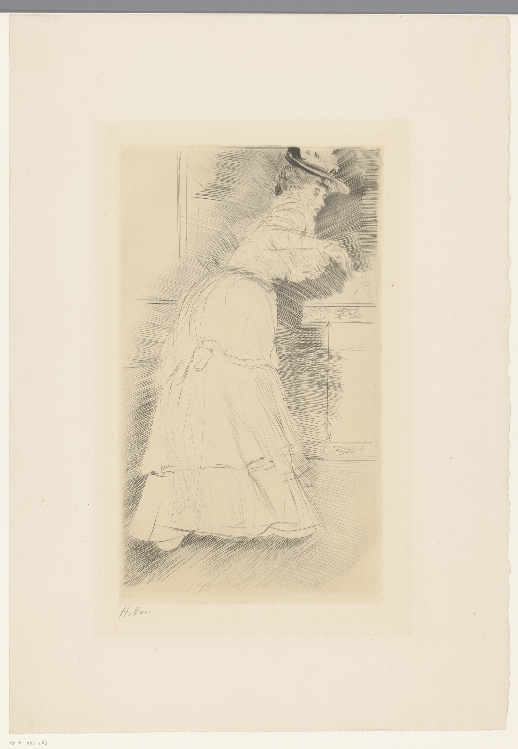 Dame met hoed in interieur