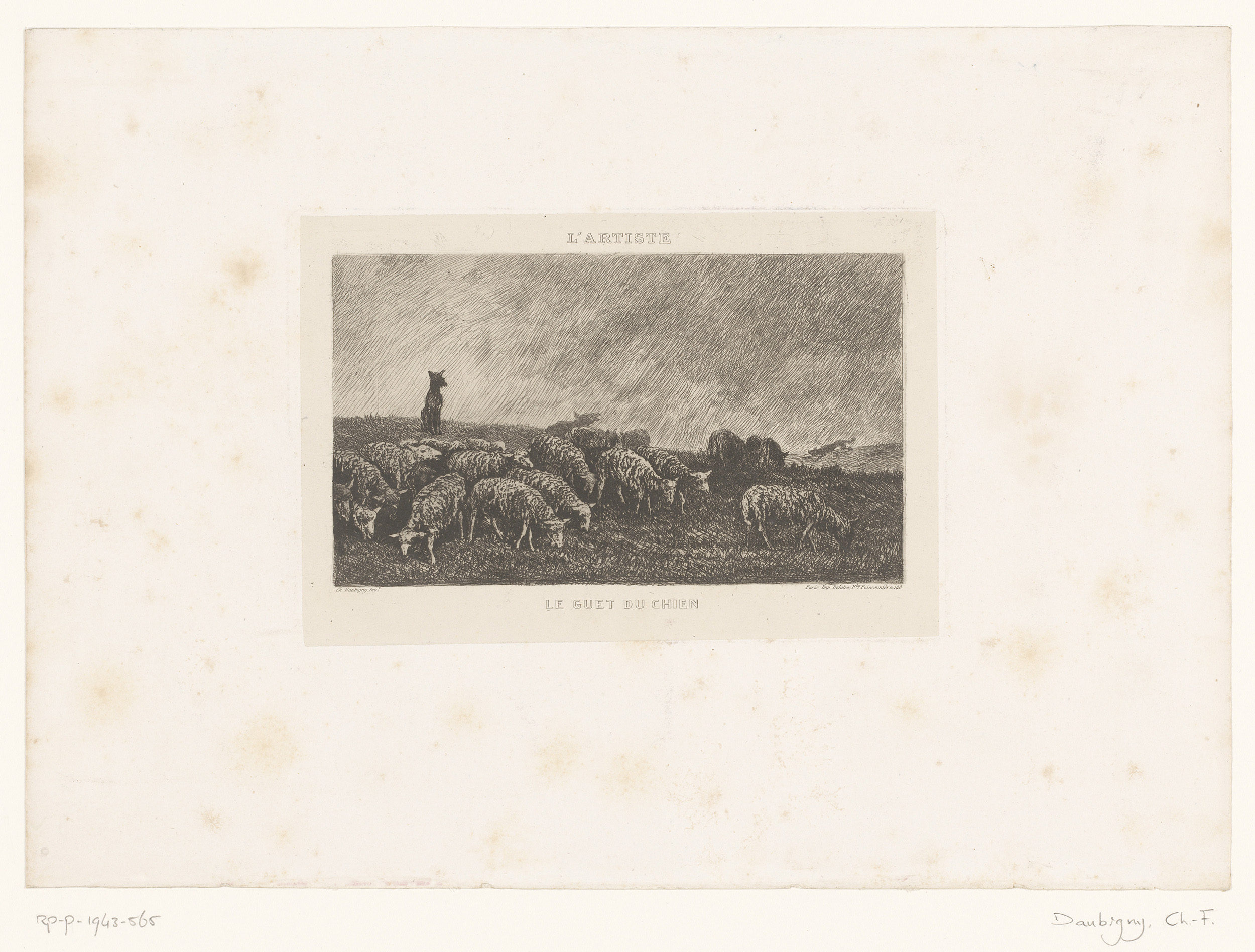 Landschap met kudde schapen bewaakt door herdershonden