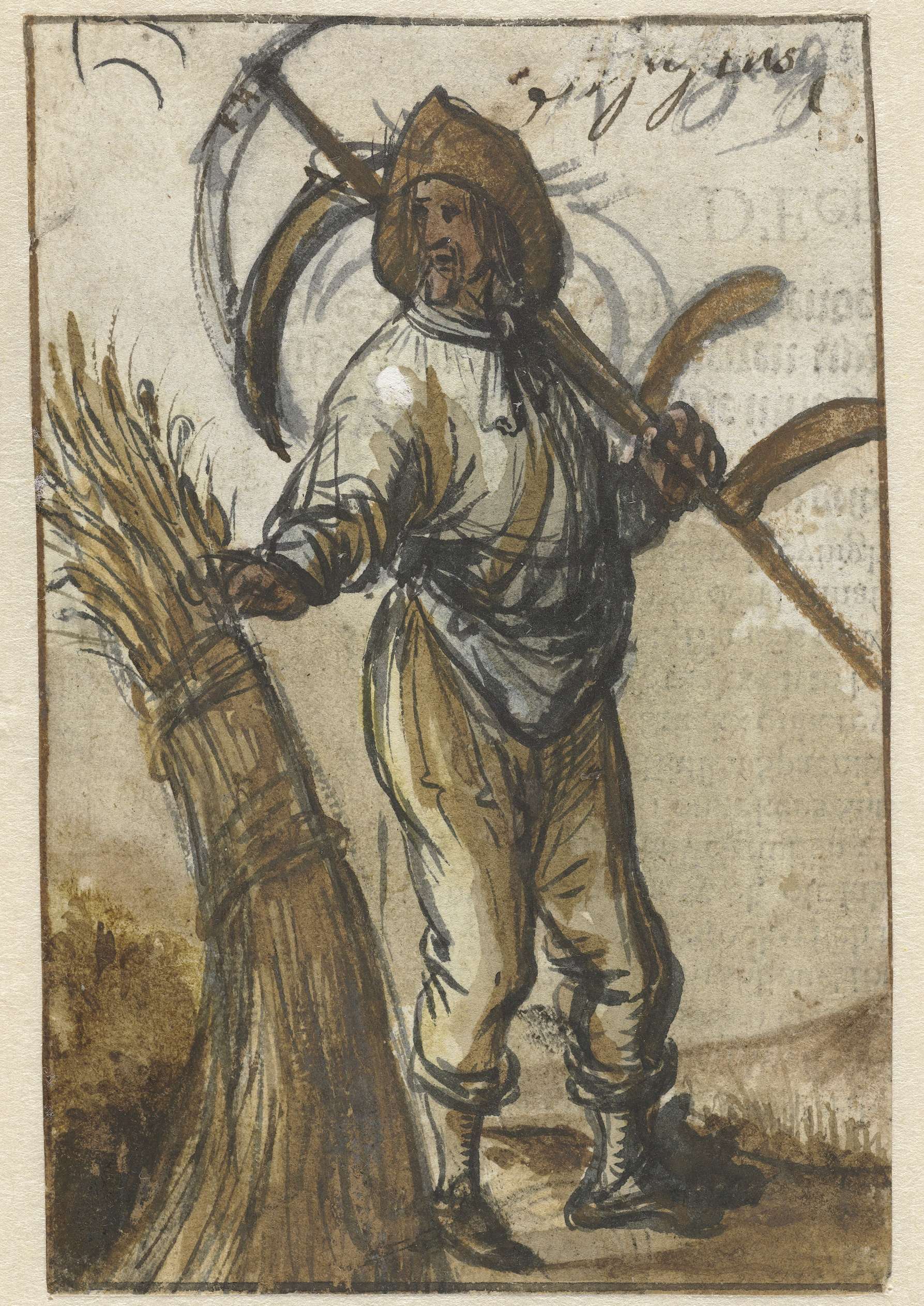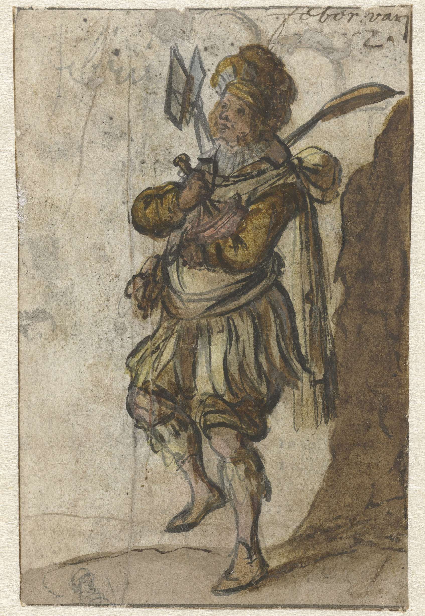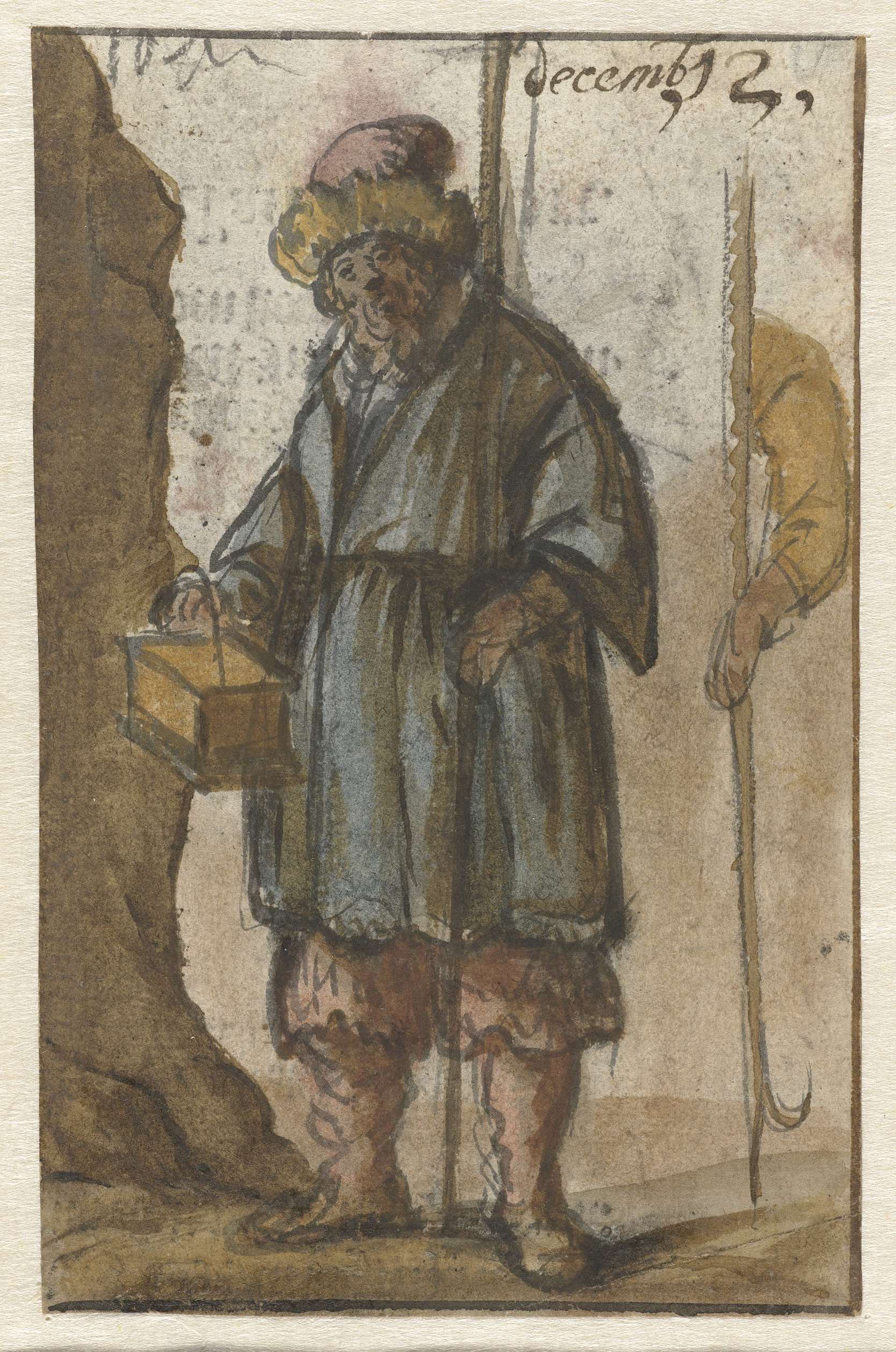 Studie van figuur gehuld in een lange mantel, op de ...