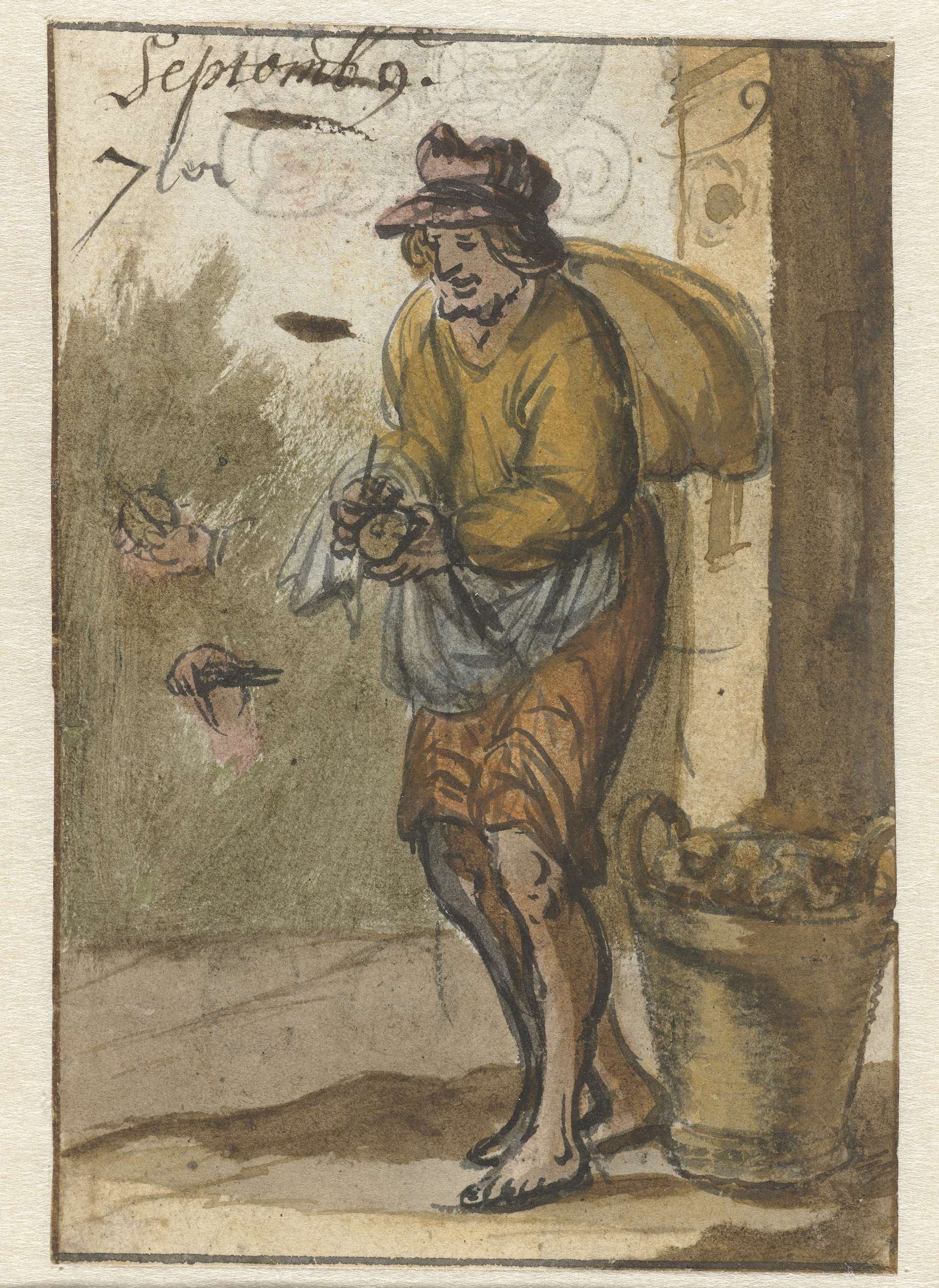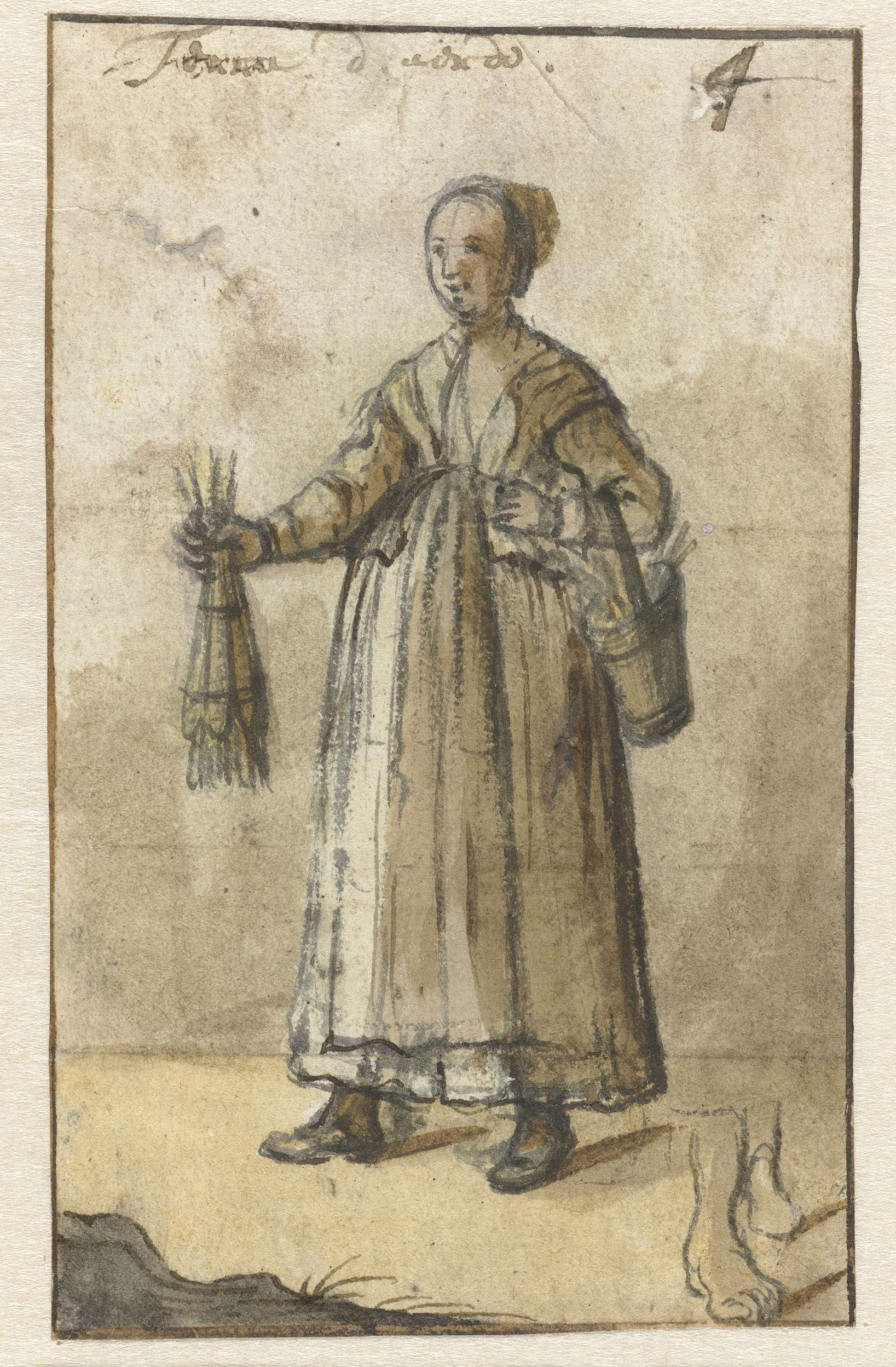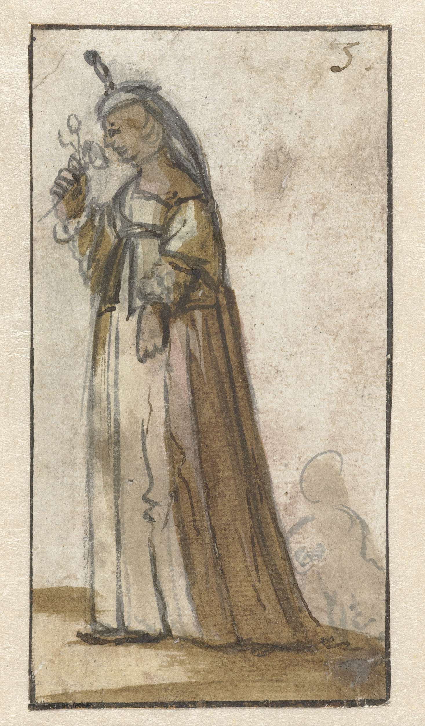 Studie van figuur gehuld in een lange mantel, op de ...