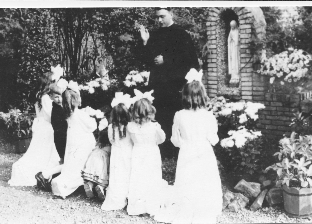 Bruidjes bij de Mariagrot in de Paterstuin te Huissen