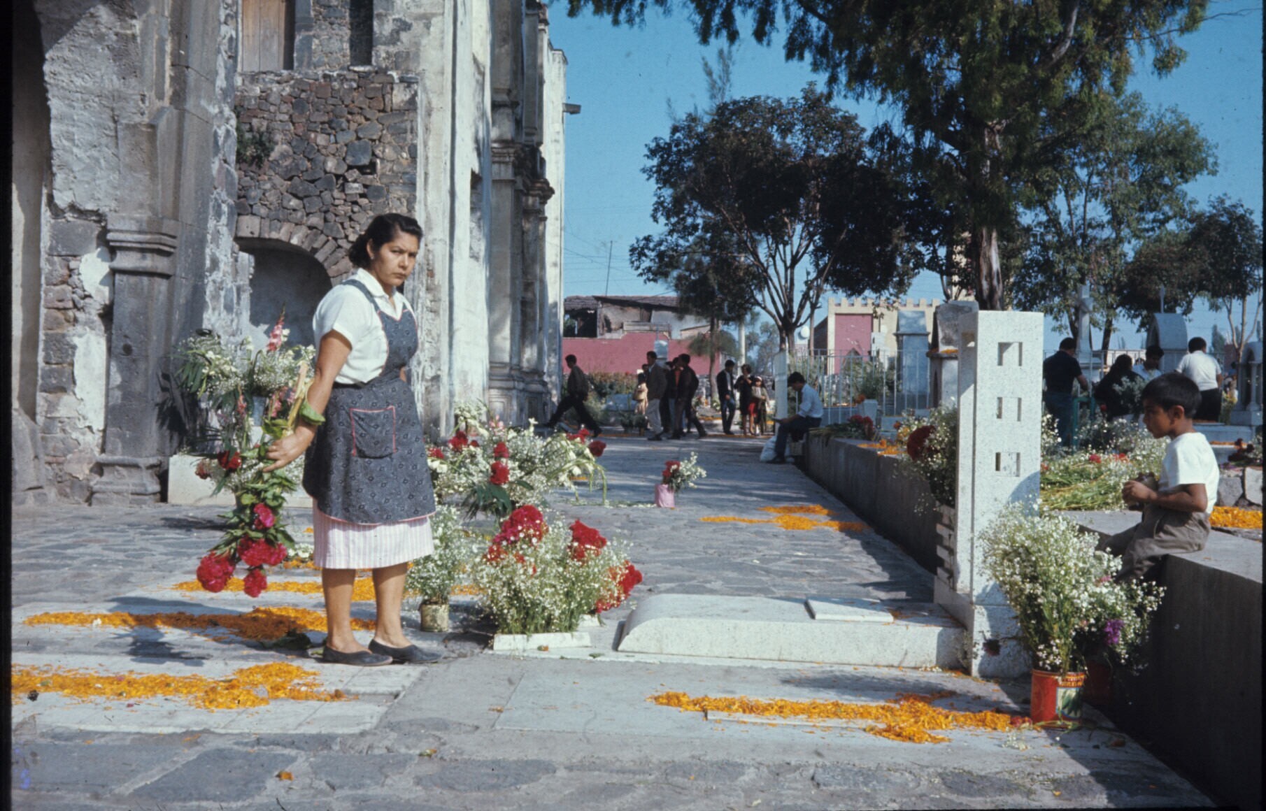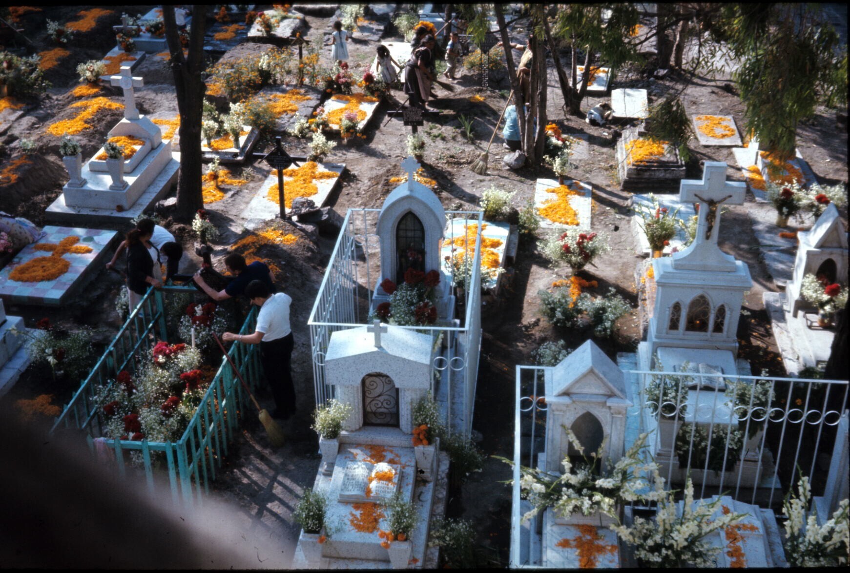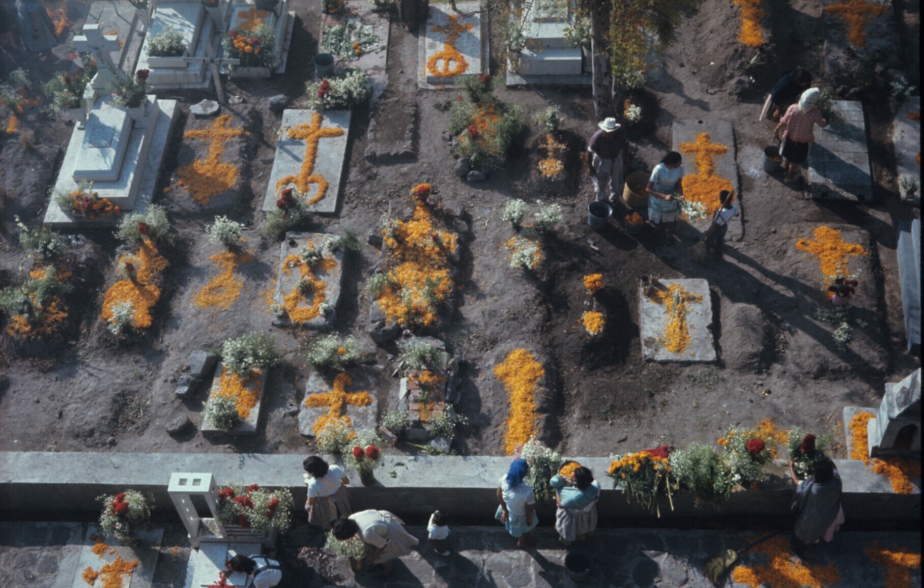 versieren van het kerkhof tijdens Allerzielen; armer...