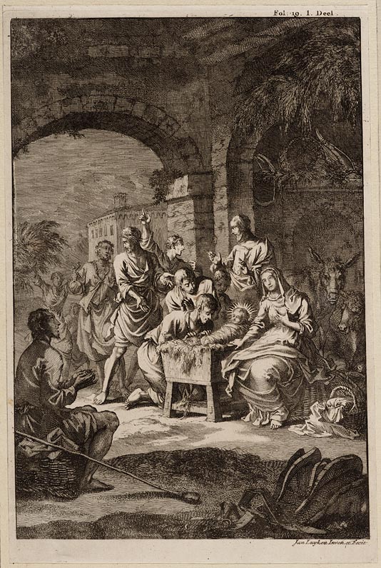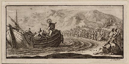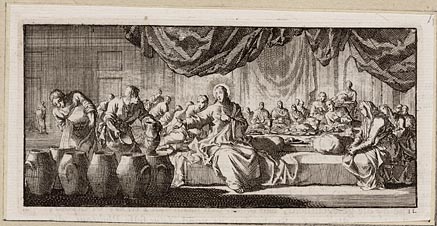 Jezus en zijn discipelen in de galerij rondom het ba...