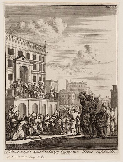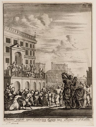 Pilatus wascht zyne handen ten bewyze van Jezus onsc...