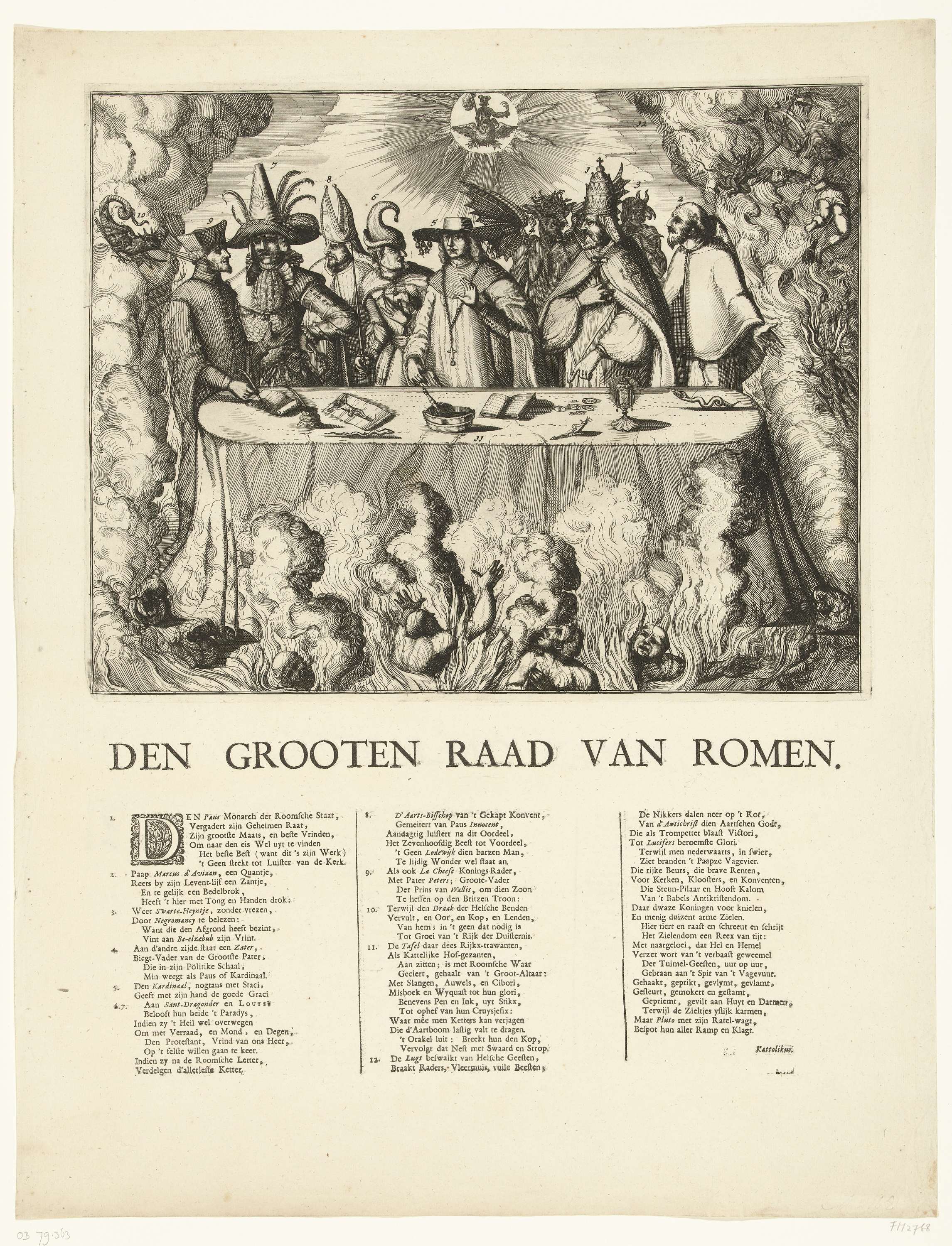 Spotprent op de val van de katholieke kerk in Engela...
