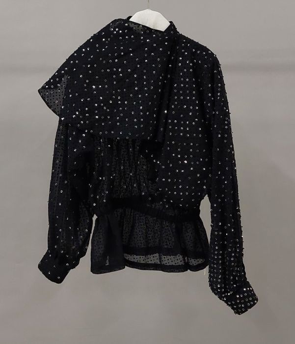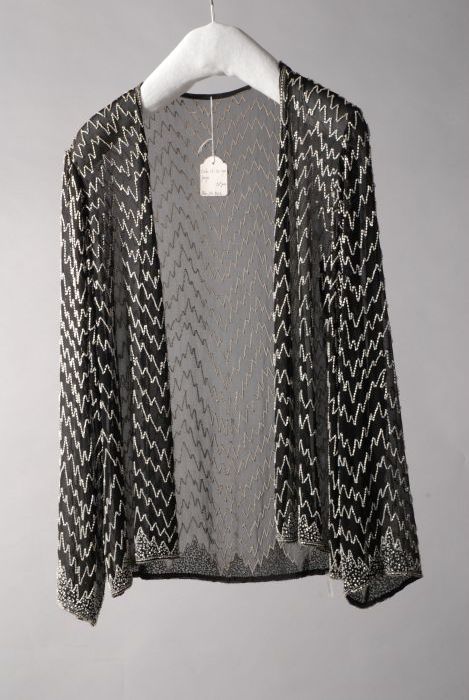 Zwarte cocktailjapon, zijde / wol, met strass-versie...
