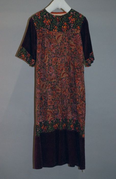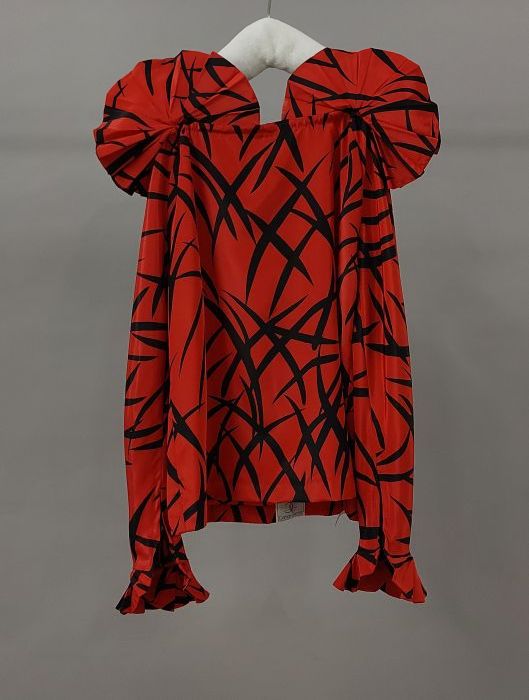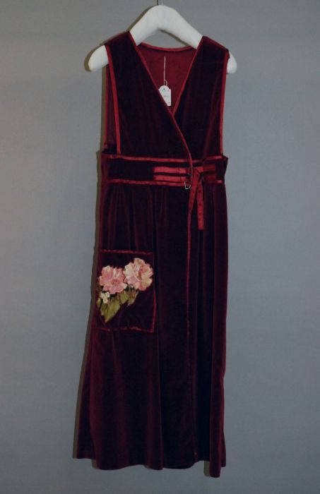 Mouwloze japon van rood fluweel met twee bloemen-app...
