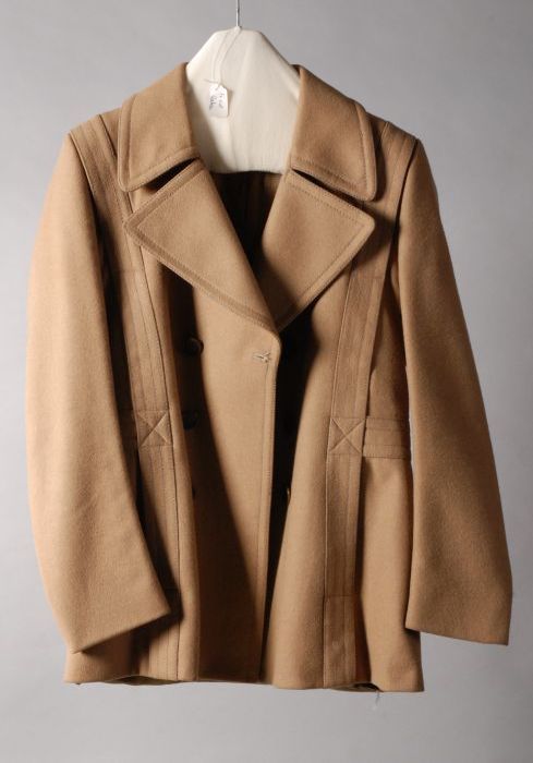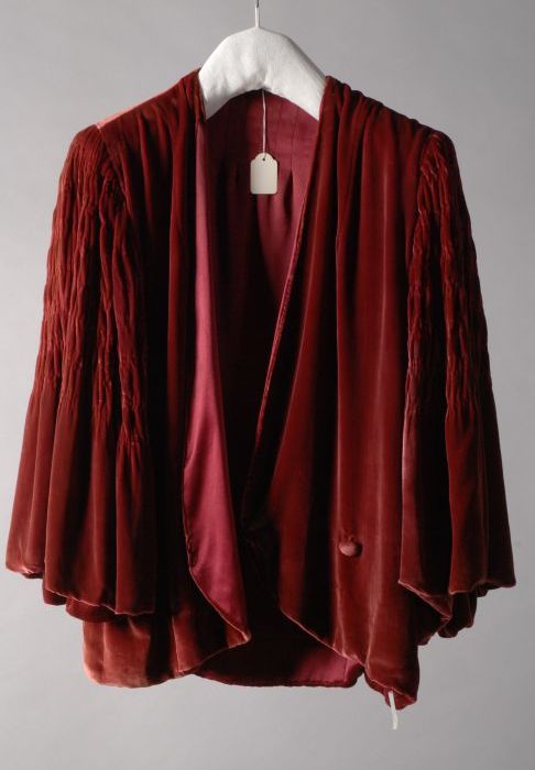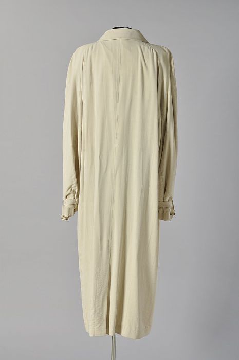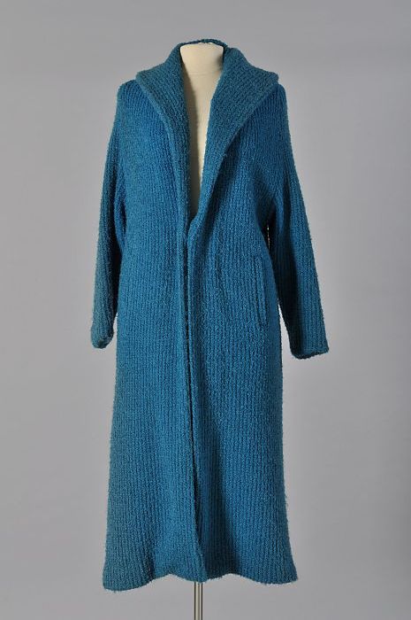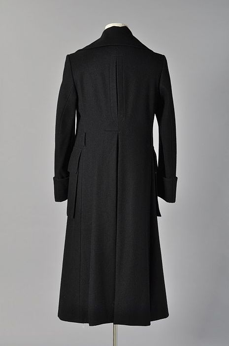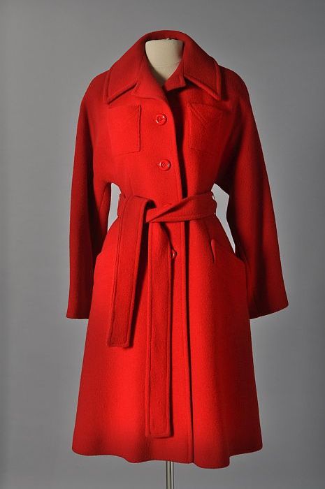 Knielange mantel van rode wol met aangeknipte mouw, ...