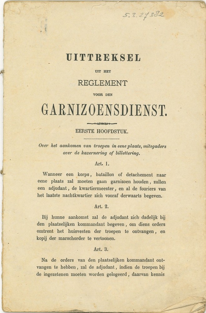 uittreksel uit het regelement voor de garnizoensdienst