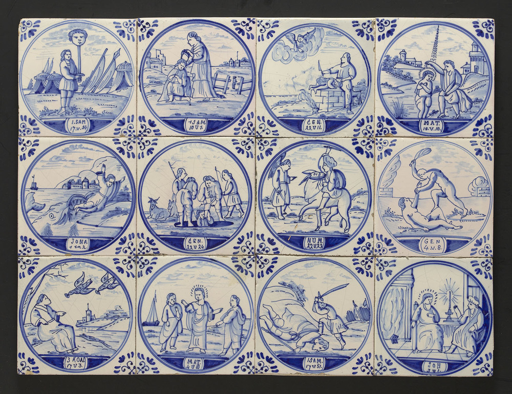Tegelveld van keramiek, tinglazuur, voorstellende ee...