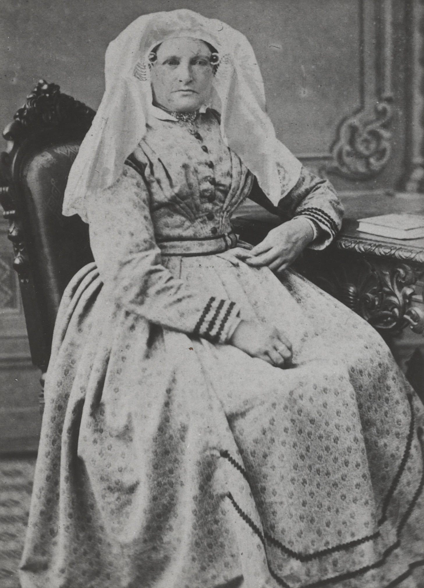 Neeltje Bout in streekdracht van De Rijp, circa 1870...