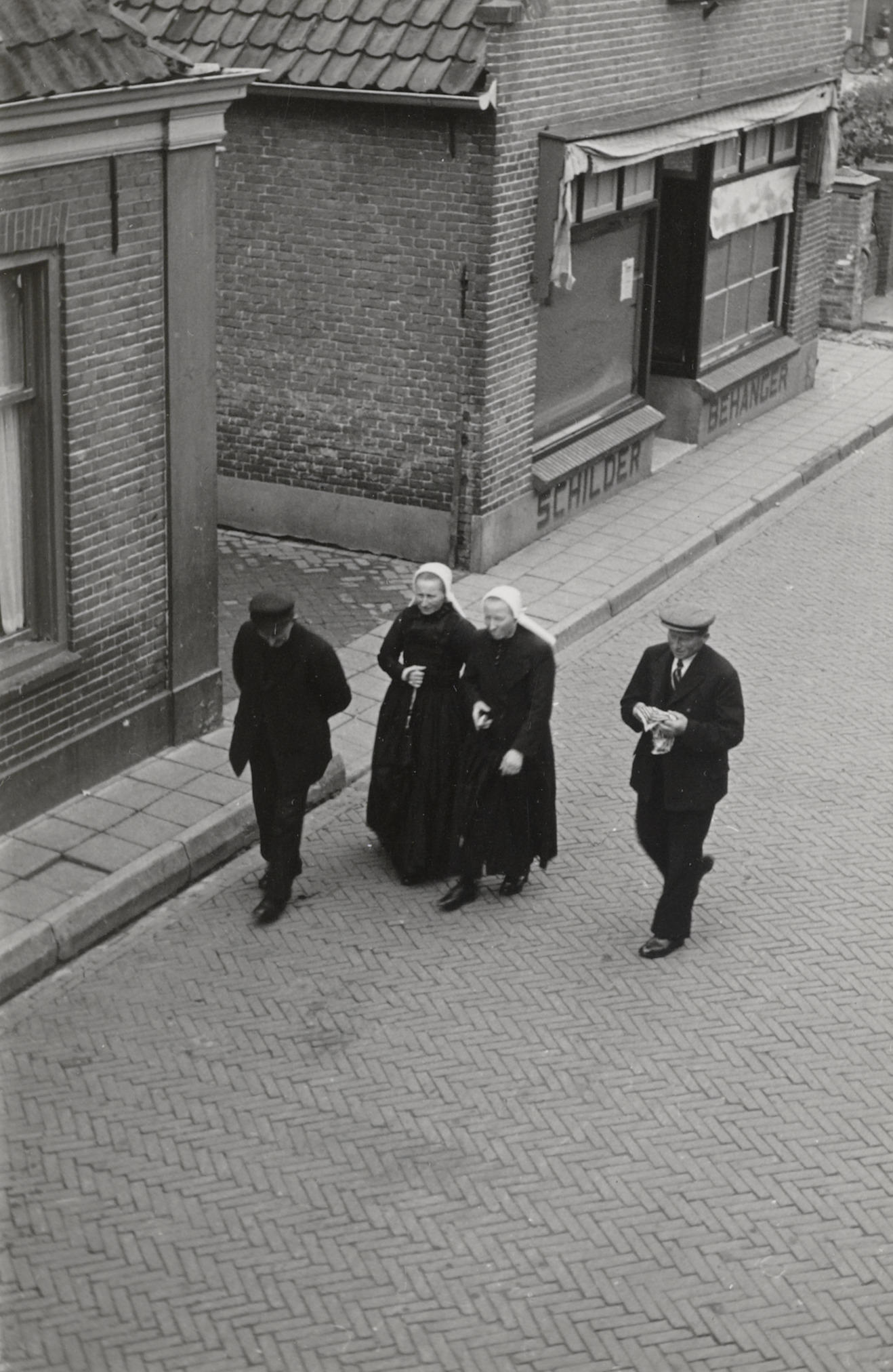 Uitgaan van de kerk, Ommen, 1946 (zwart-wit foto)