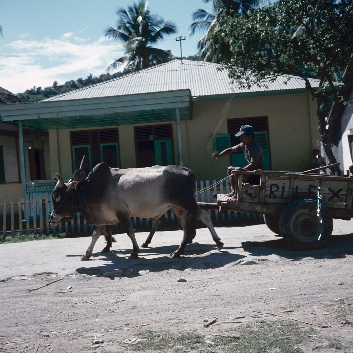 Een kar getrokken door ossen, Sulawesi.
