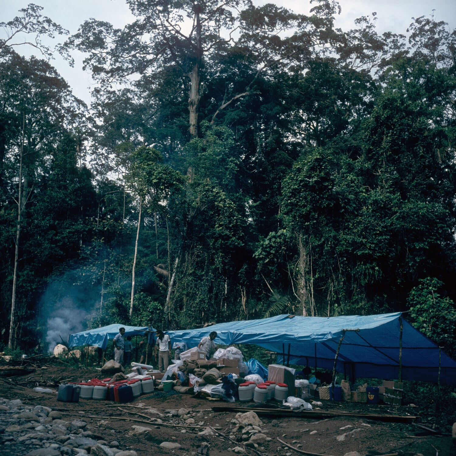 Tenten van de onderzoeksexpeditie in het regenwoud t...