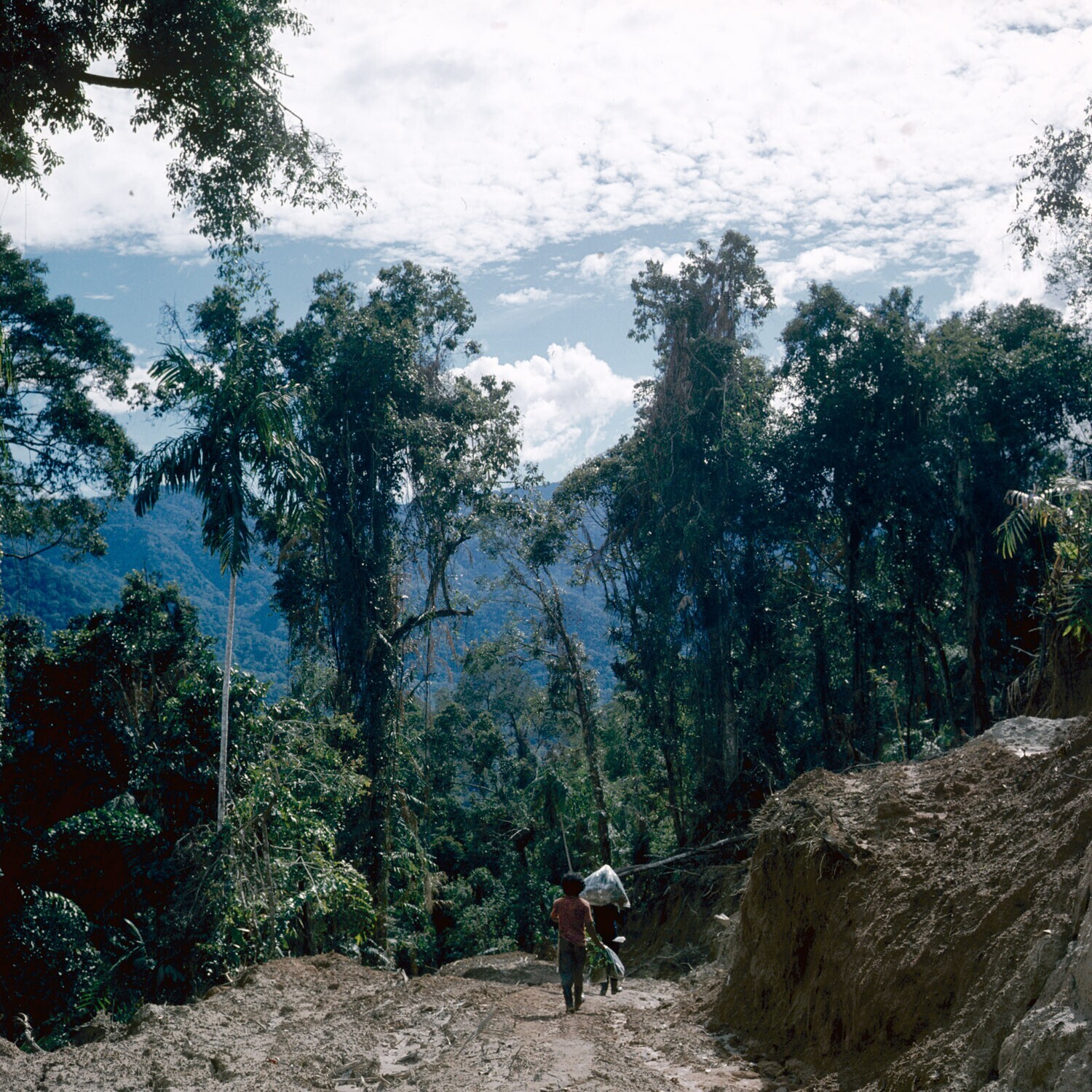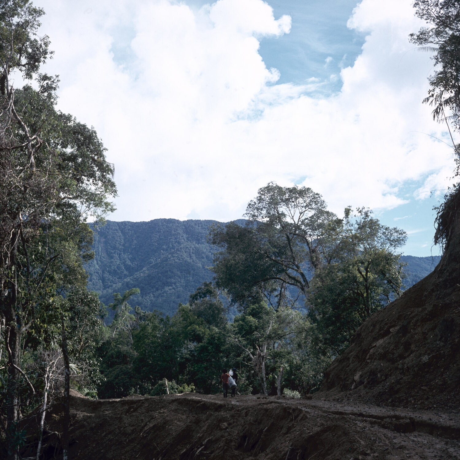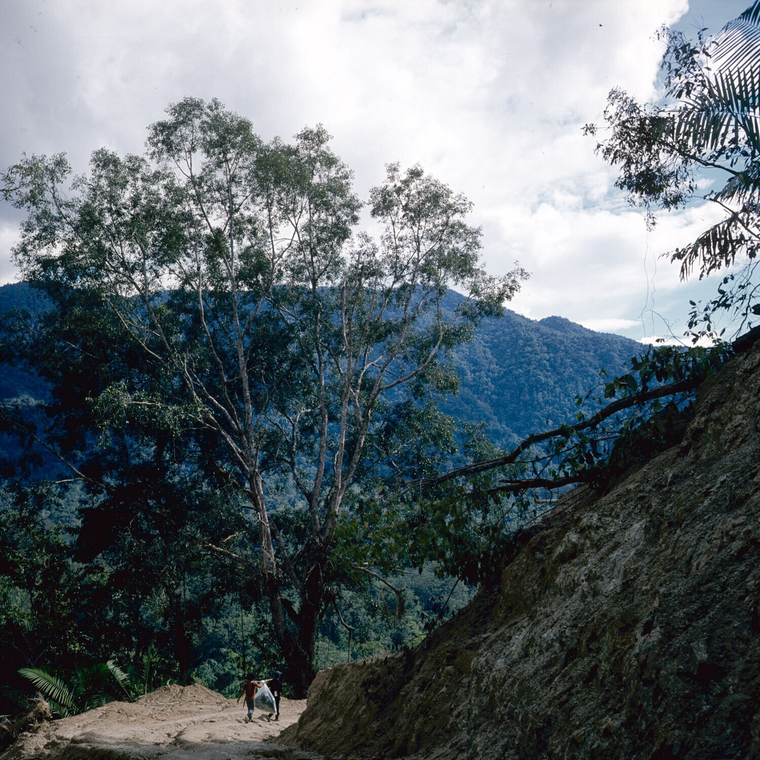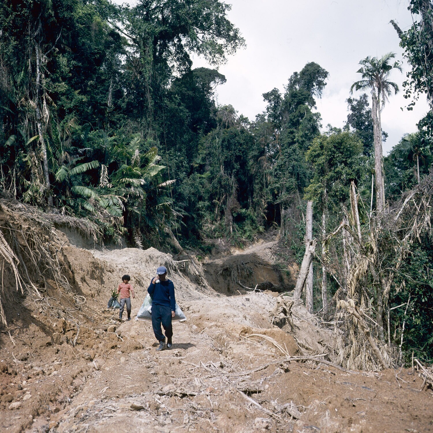Pad langs ontgonnen stuk van het regenwoud in de Sop...