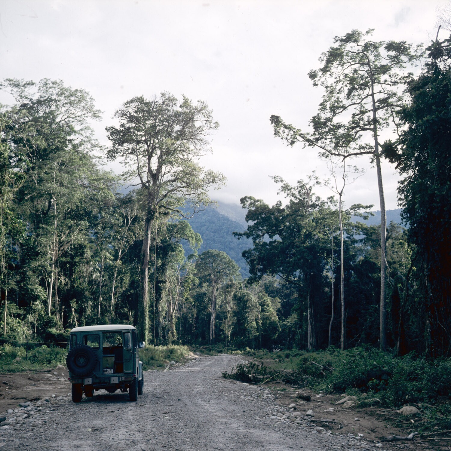 Jeep van de expeditie op een weg door de Sopu vallei...