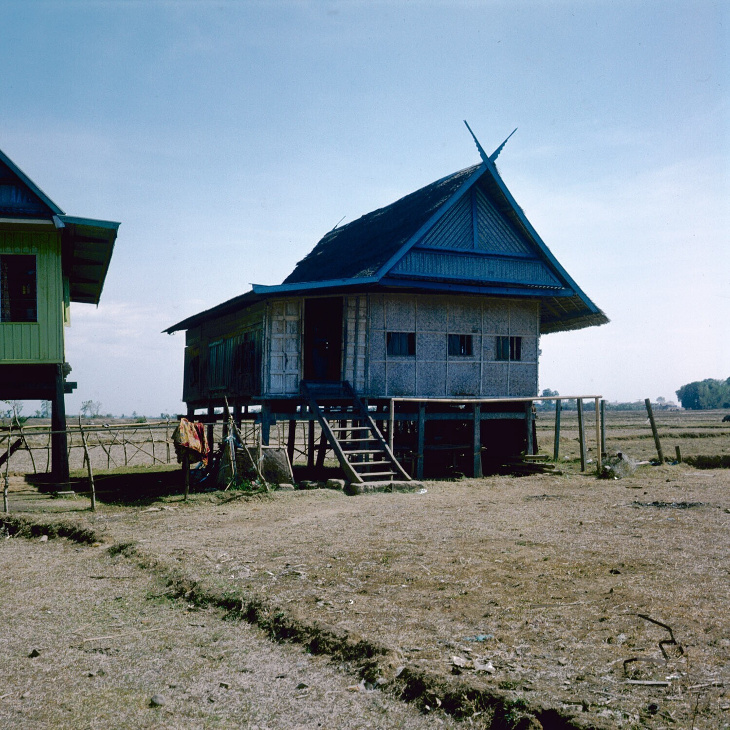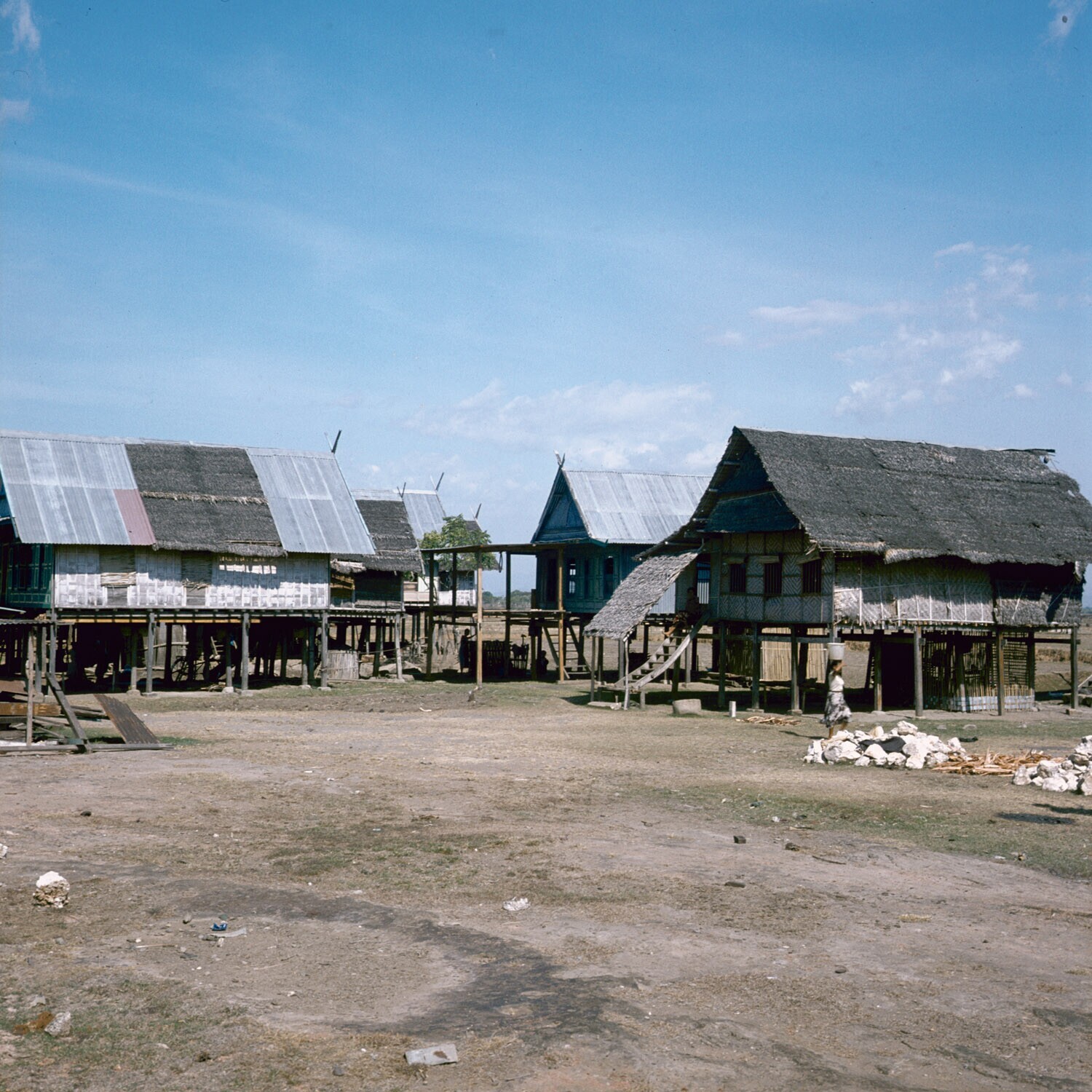 Typische Makassaarse woningen met rieten of zinken d...
