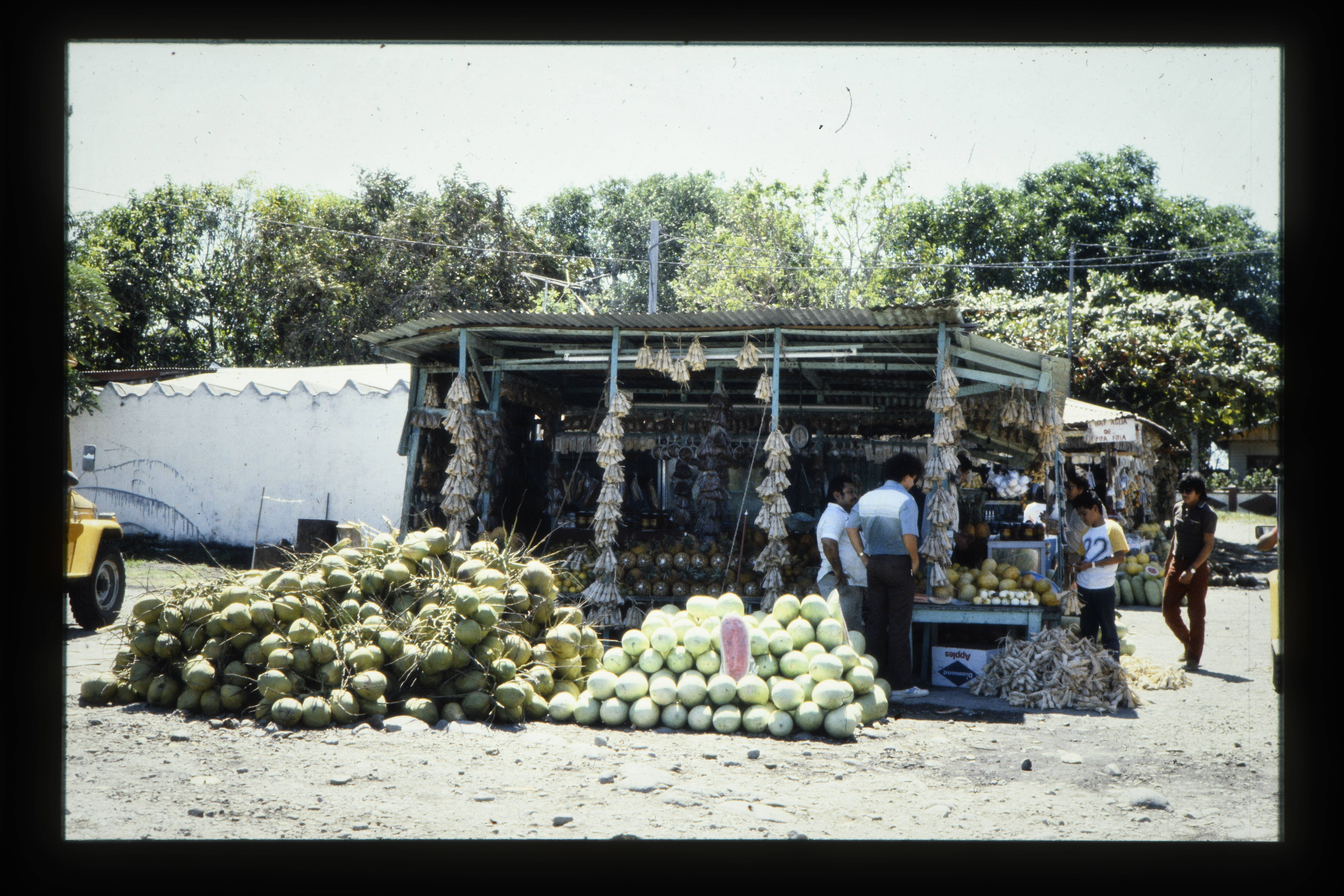 'Verkoop van o.a. meloenen aan het strand van Nicoya.'