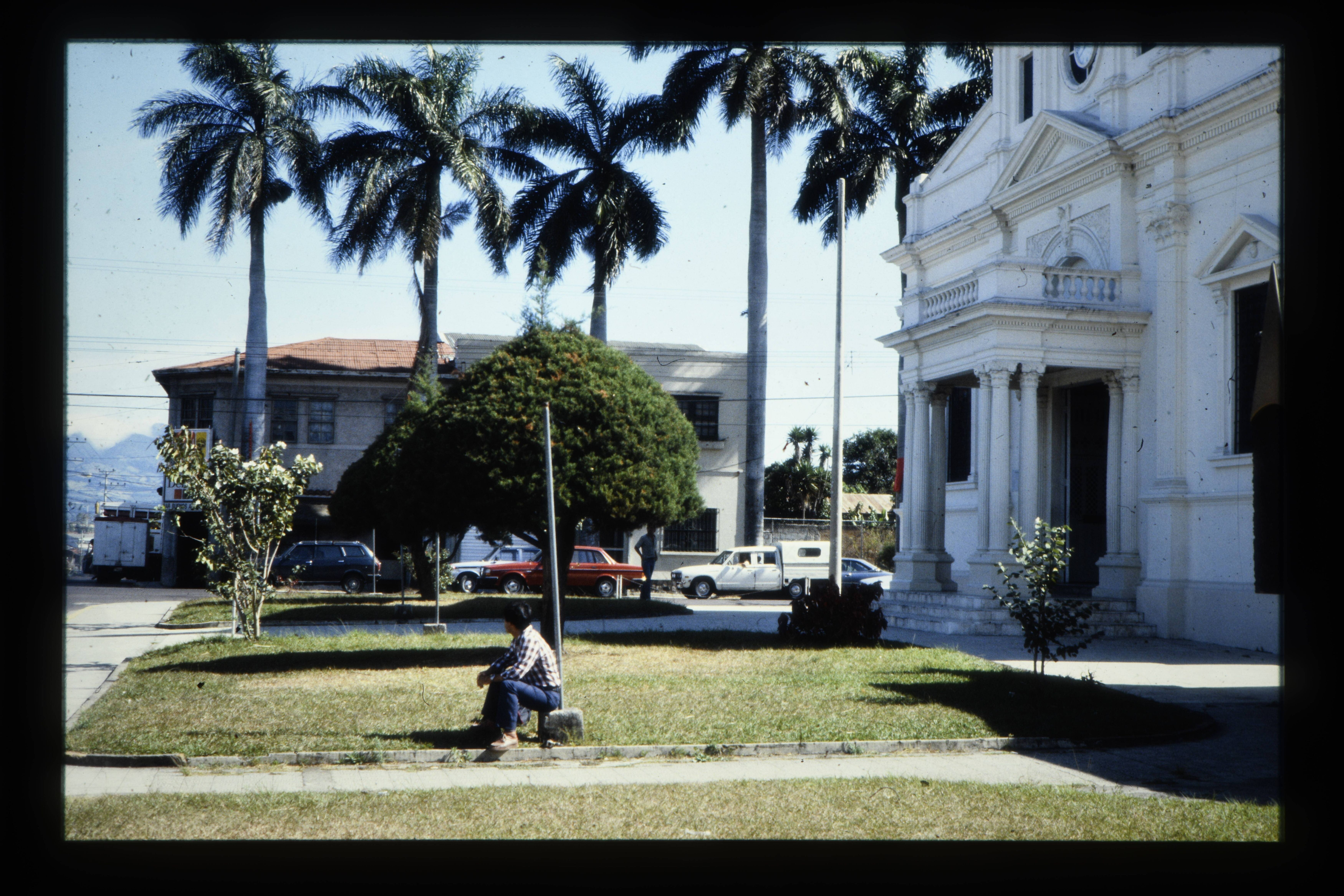 'Palmen nabij Rooms-Katholieke kerk.'