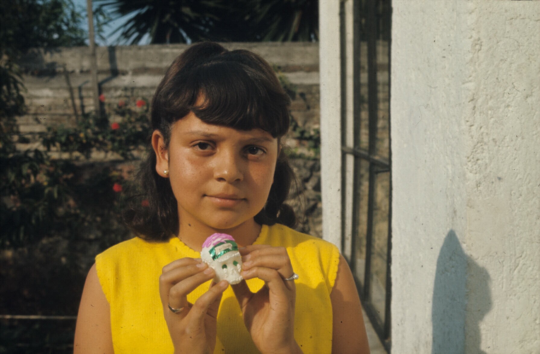 Marisa López y Bedoya met haar doodshoofdje van suik...
