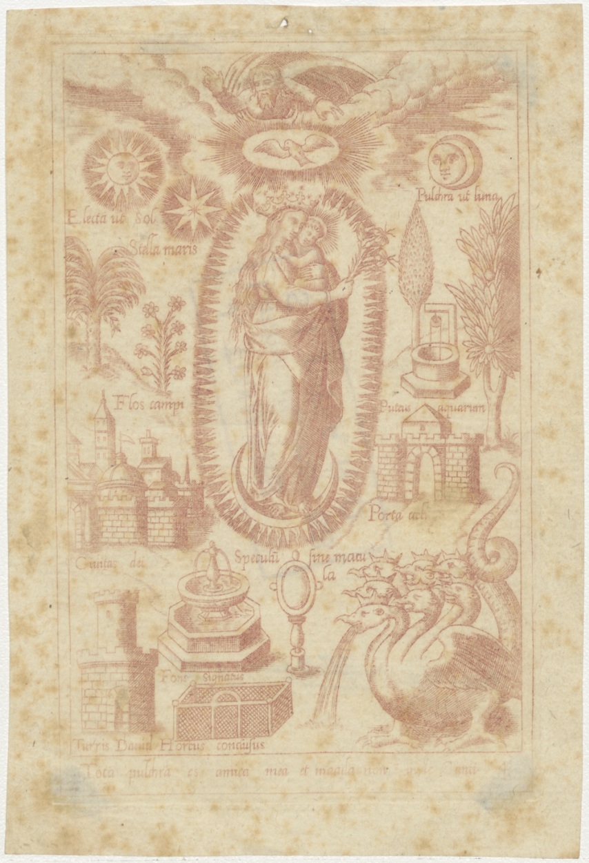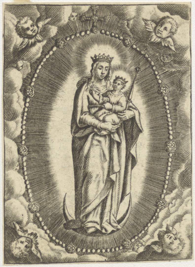 Maria, kind, scepter, halve maan, kz. Bid voor ziel ...